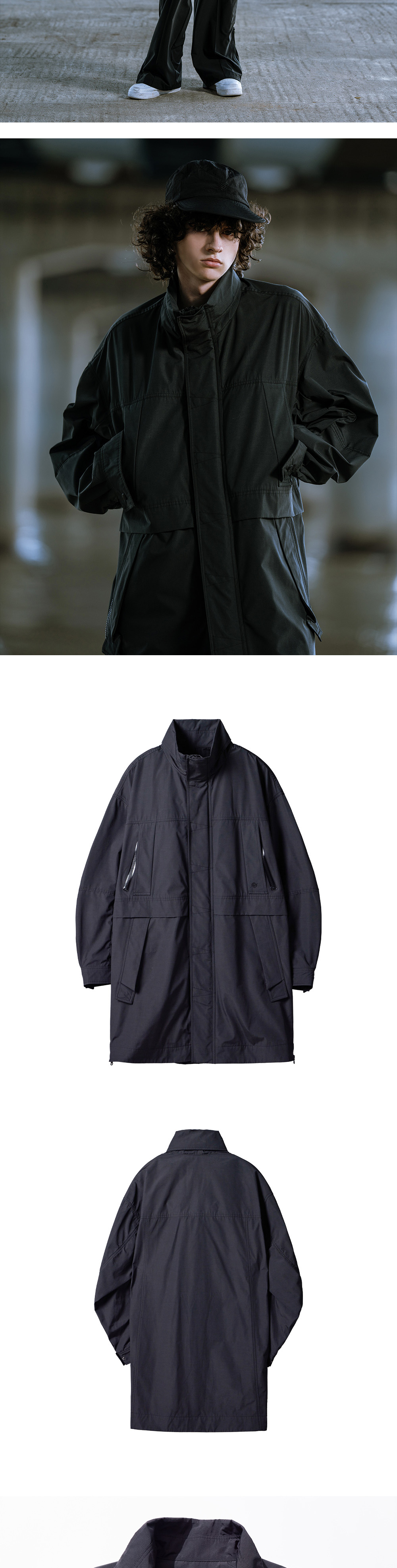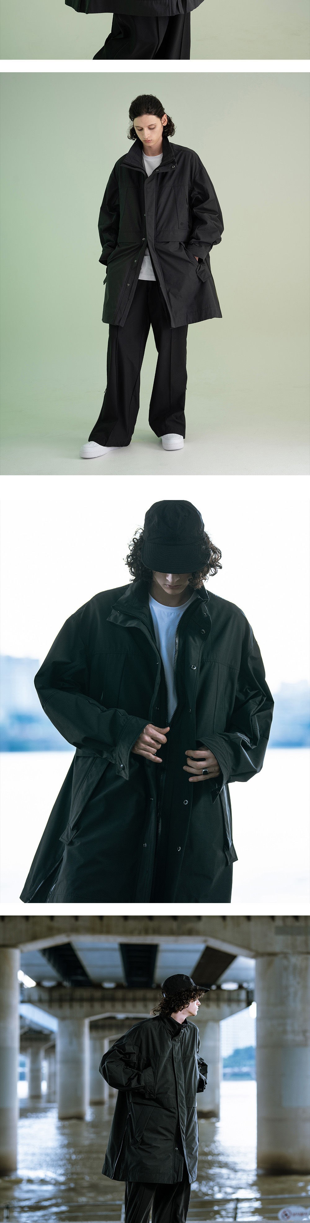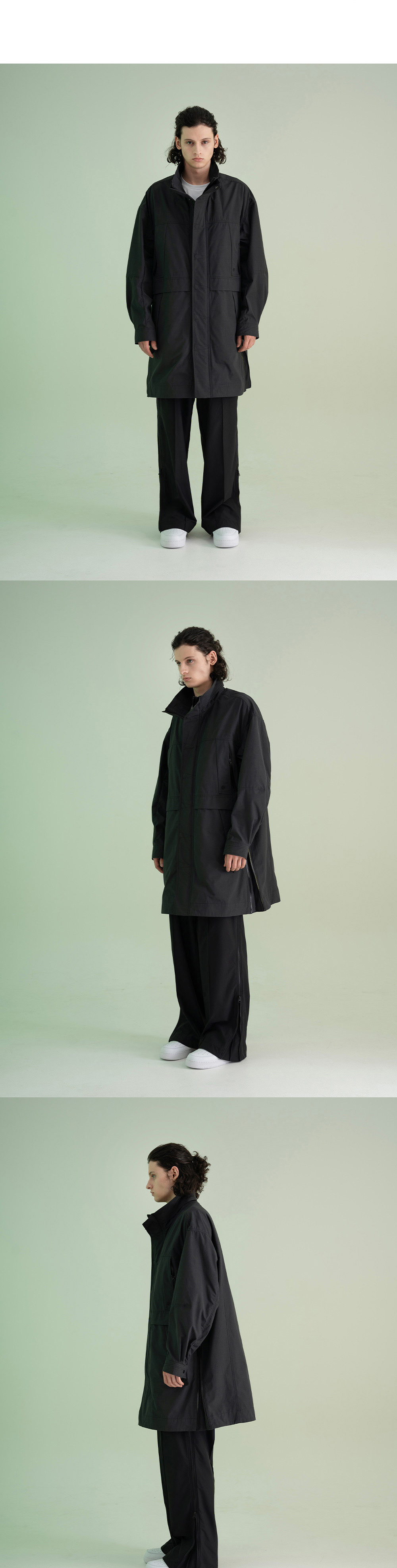 칼라파타르 폴리 코튼 립 더블 플래킷 롱 재킷 그레이