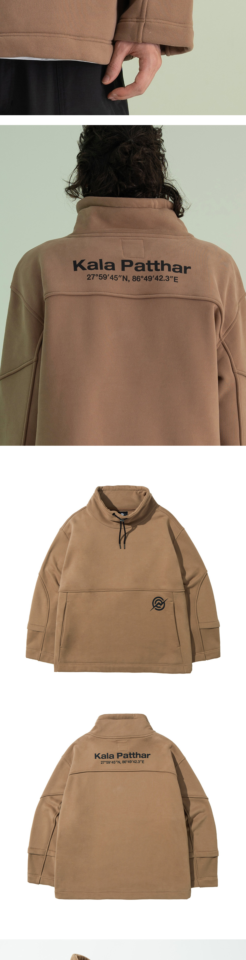 KALA PATTHAR Cotton Napping Turtle String Sweat Shirt Beige