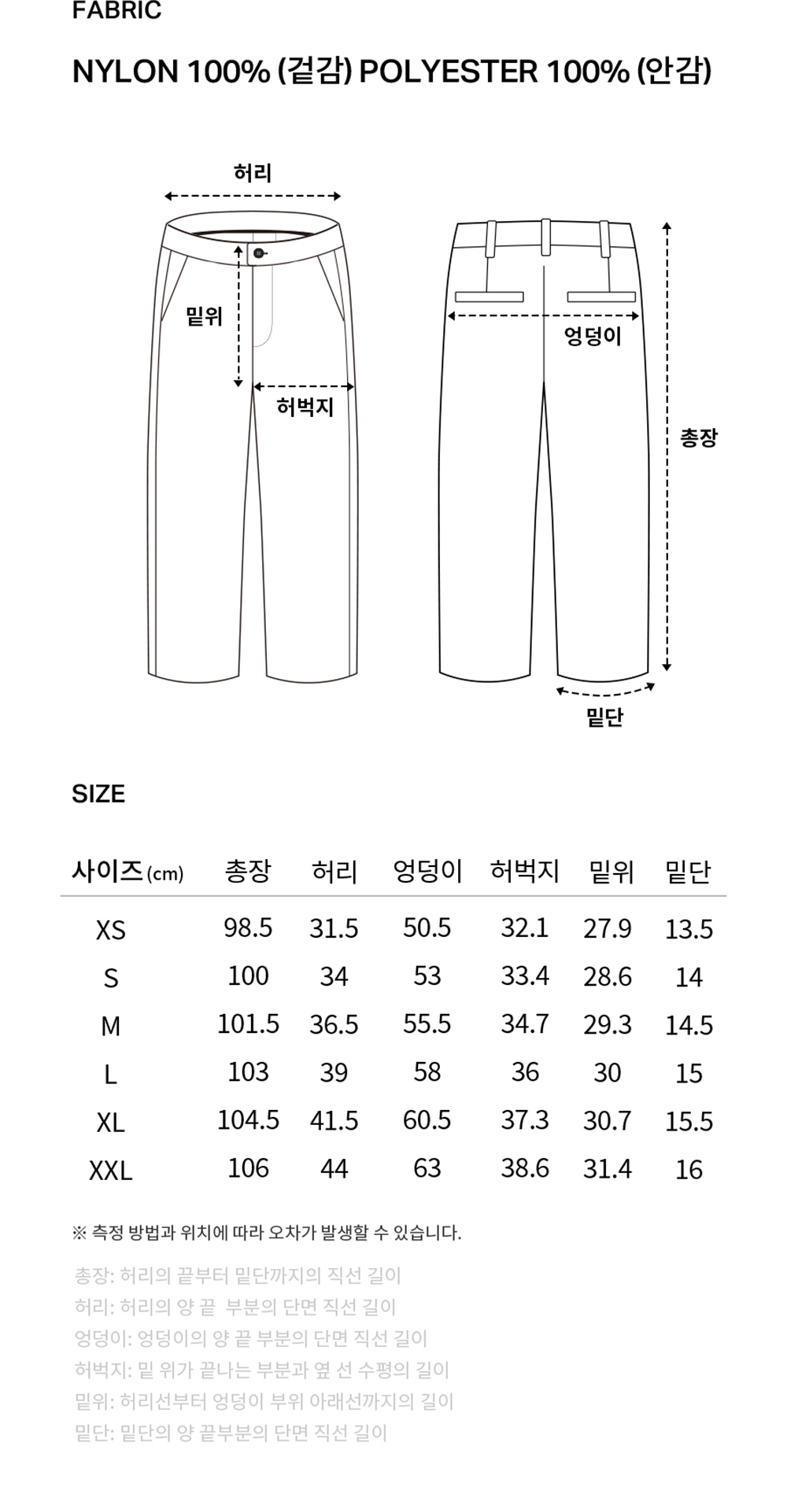 커버낫 컴피 나일론 윈드브레이커 팬츠 블랙
