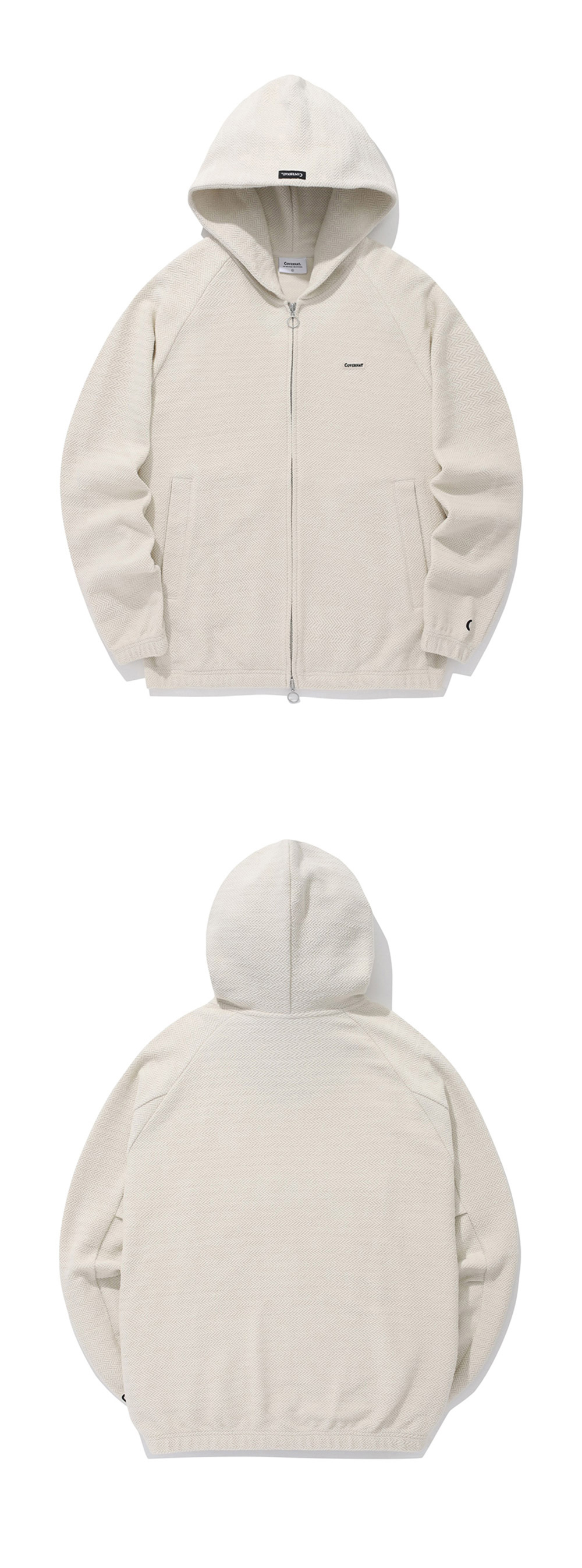 Covernat Herringbone Hoodie Zip-Up Oatmeal