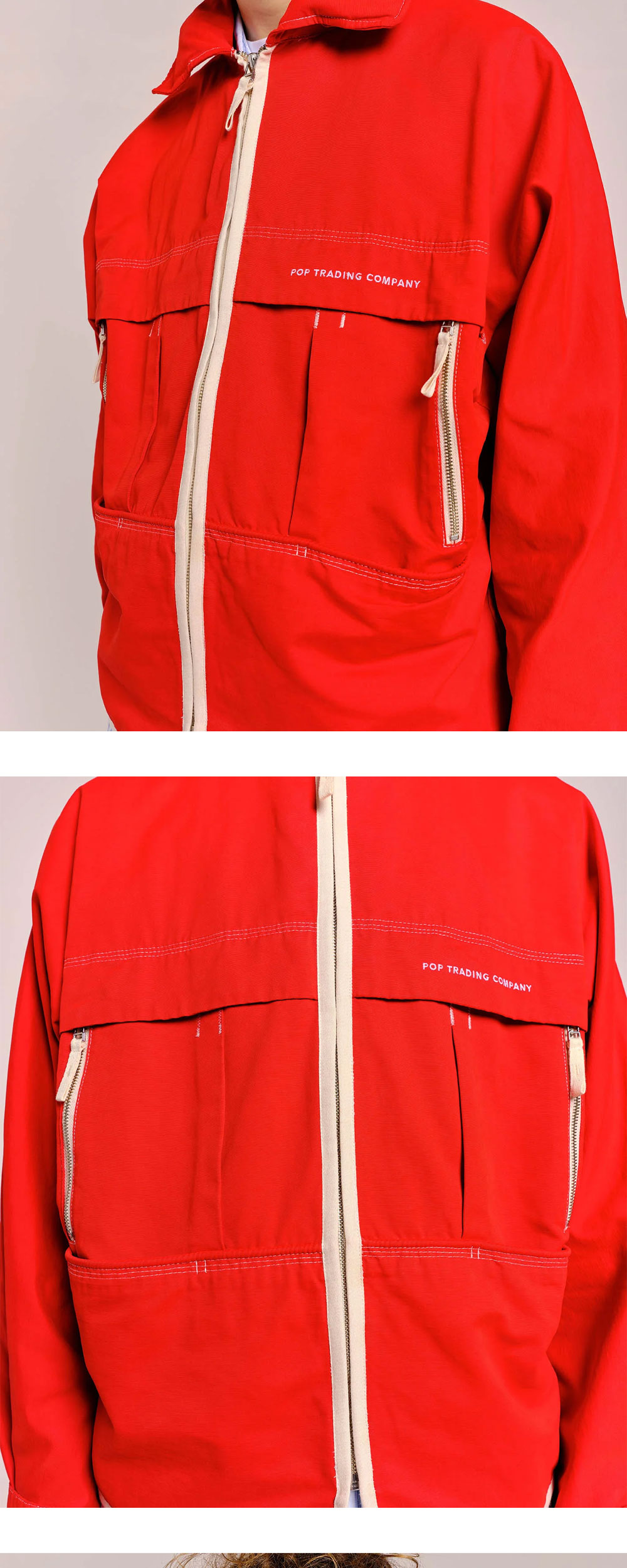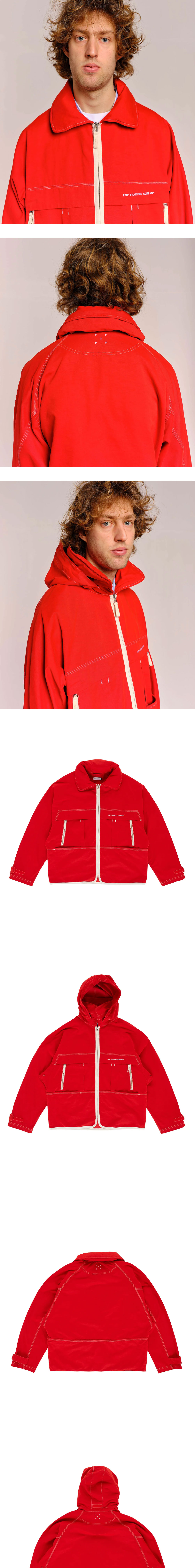 후드가 내장되어 있어 활용도가 높은 팝 트레이딩 컴퍼니의 자켓입니다. - 트리플 스티치 디테일 - 조절 가능한 벨크로 형태의 소매 - 좌측 가슴 및 뒷목의 로고 자수