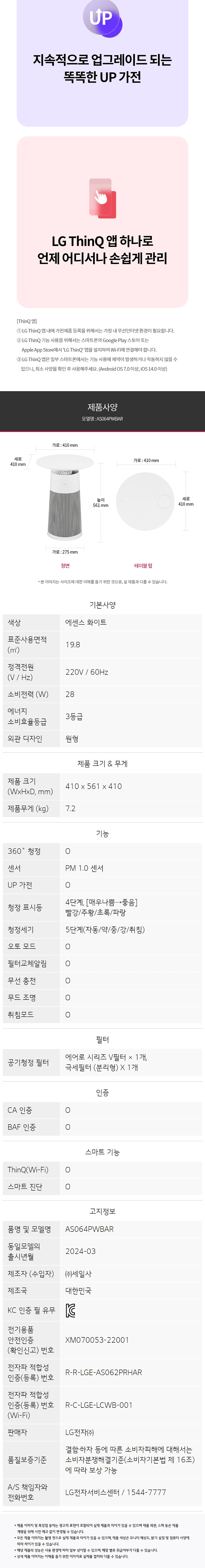 엘지 퓨리케어 오브제컬렉션 에어로퍼니처 공기청정기 에센스 화이트