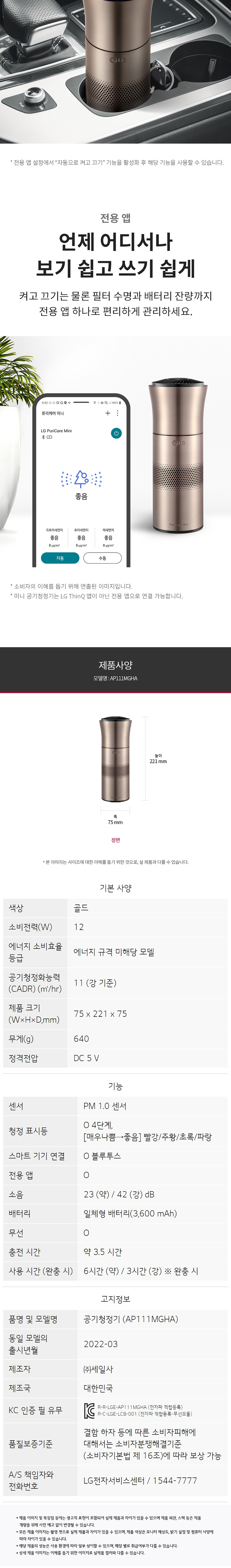 엘지 퓨리케어 360도 미니 공기청정기 골드