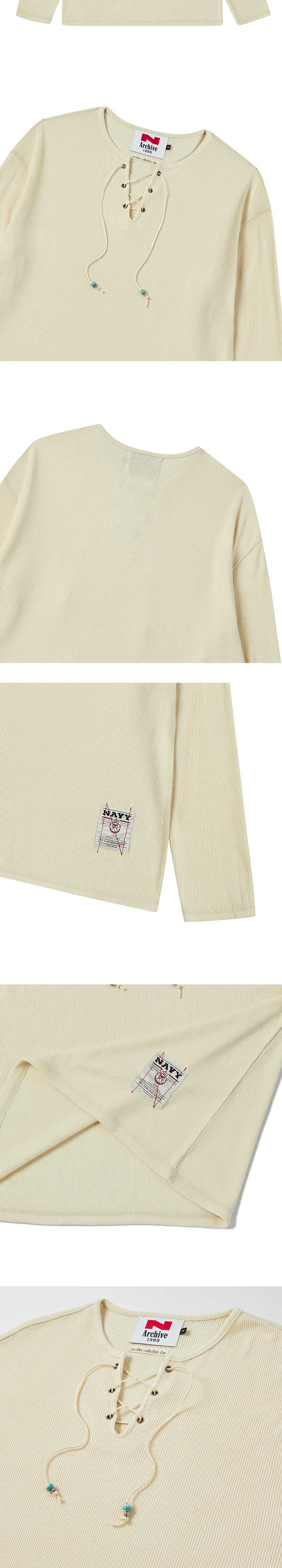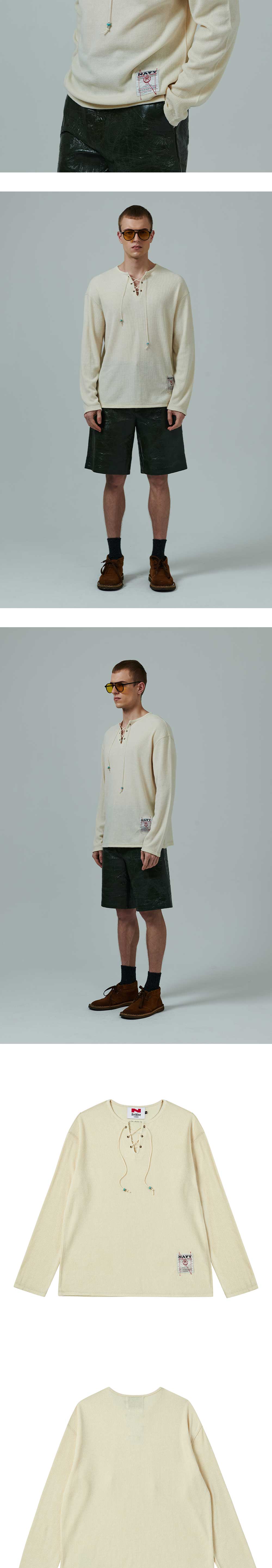 엔 아카이브 뉴 아카이브 레더 스트링 니트 롱 슬리브 크림