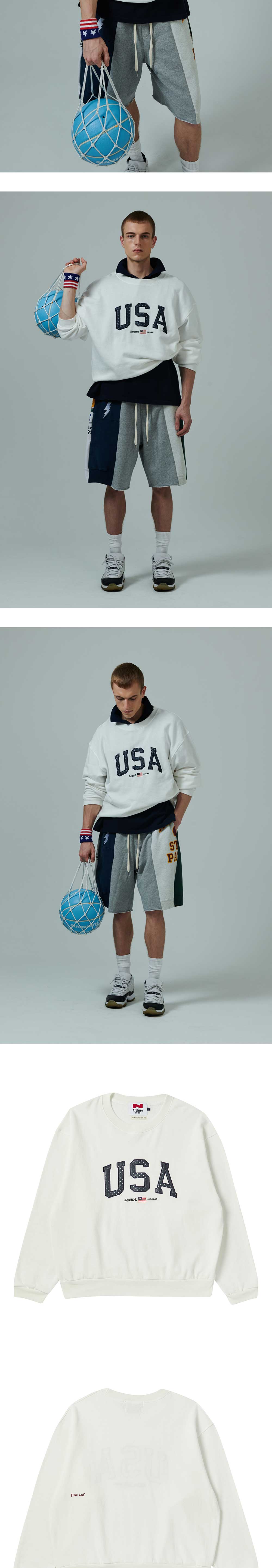 ㆍ컬렉션 라인의 90년대 아메리칸 클래식 무드에서 영감을 받아 제작된 스웻셔츠 ㆍ90년대 방식 제작된 패턴과 중량을 덜어낸 기모 바닥의 스웻 소재를 사용한 오리지널리티의 재해석 ㆍ덤블워싱&텐타가공으로 세탁 후 변형 최소화 ㆍ펀칭된 비건 레더를 레이저 컷팅해 로고로 더한 심볼 ㆍ앞판과 뒤판의 고밀도의 자수로 표현된 슬로건 디테일 ㆍ남녀공용 착용