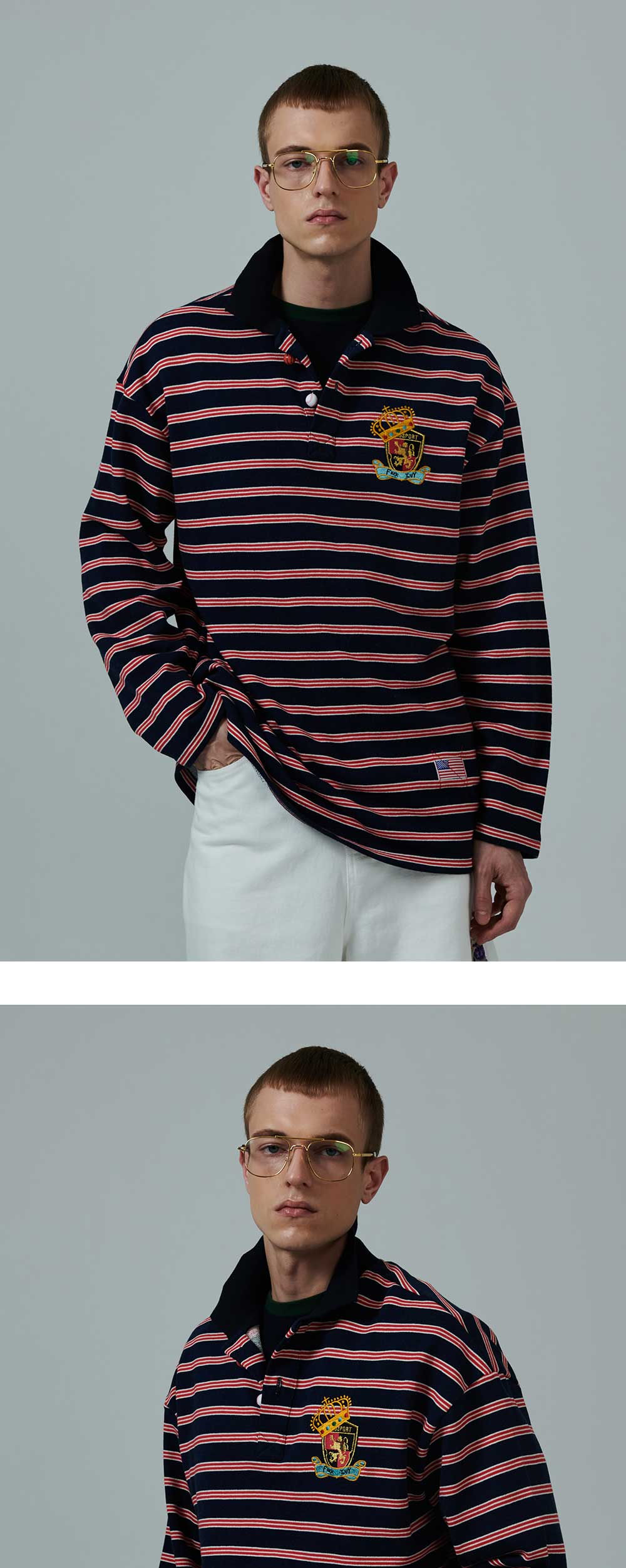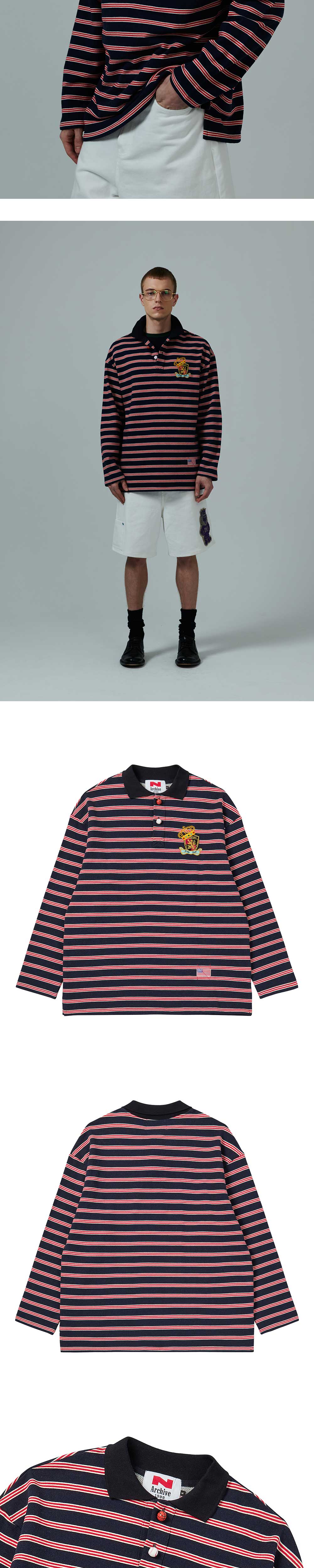 ㆍ컬렉션 라인의 90년대 프레피 룩에서 영감을 받아 제작된 스트라이프 패턴의 PK 티셔츠 ㆍ90년대 방식으로 직조된 헤비 게이지의 코튼 원사를 통한 오리지널리티의 복각 ㆍ가슴에 두 가지 방식으로 제작된 와팬 자수 포인트 ㆍ덤블워싱&텐타가공으로 세탁 후 변형 최소화 ㆍ공 모양으로 제작된 포인트 단추 디테일 ㆍ남녀공용 착용