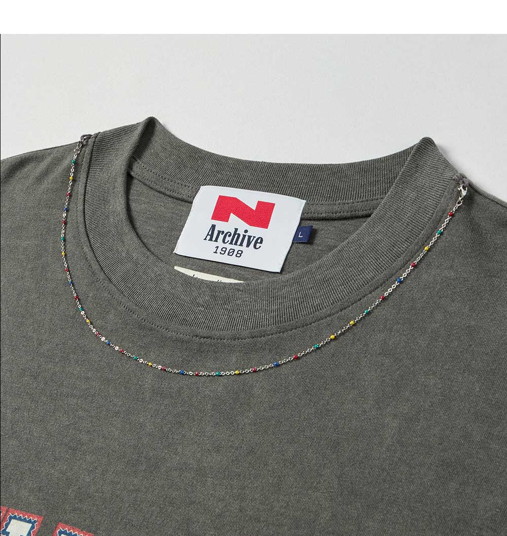 N ARCHIVE Vintage Nevada Necklace Detail Long Sleeve T-Shirts Gray