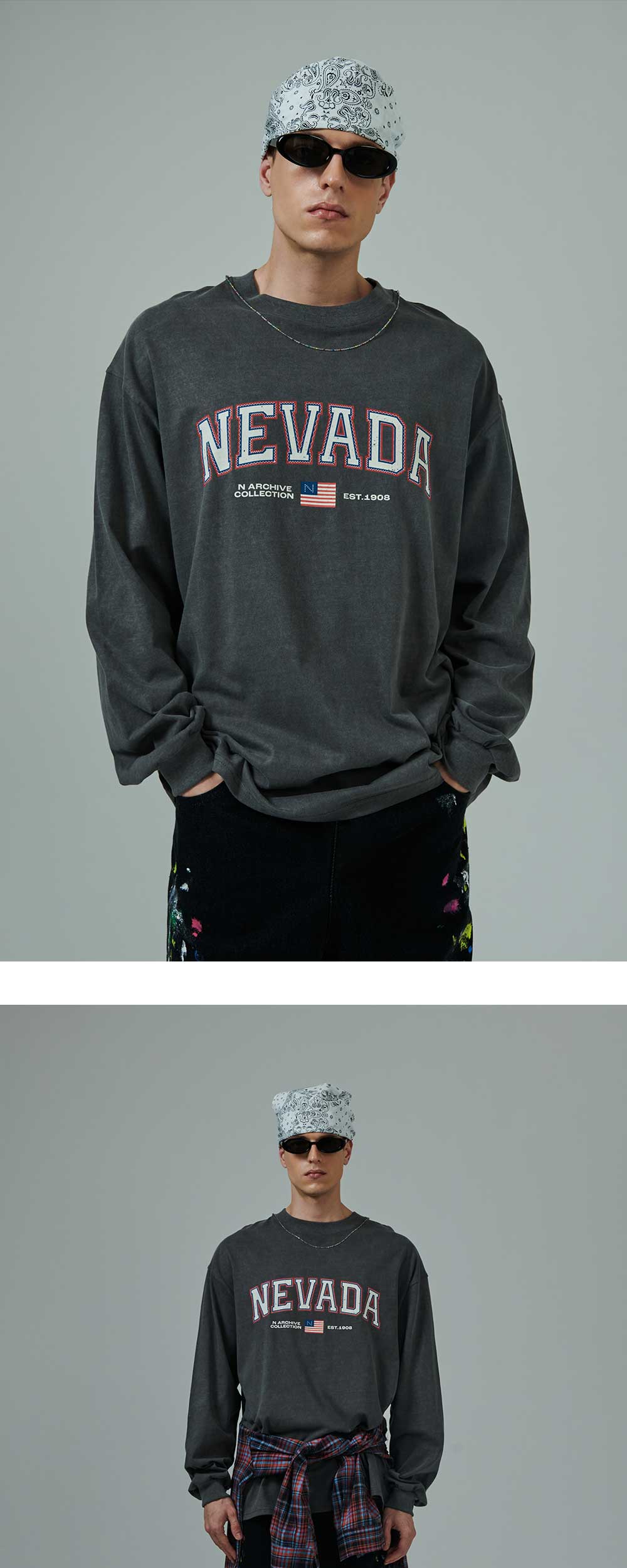 엔 아카이브 빈티지 네바다 네크리스 디테일 롱 슬리브 티셔츠 그레이
