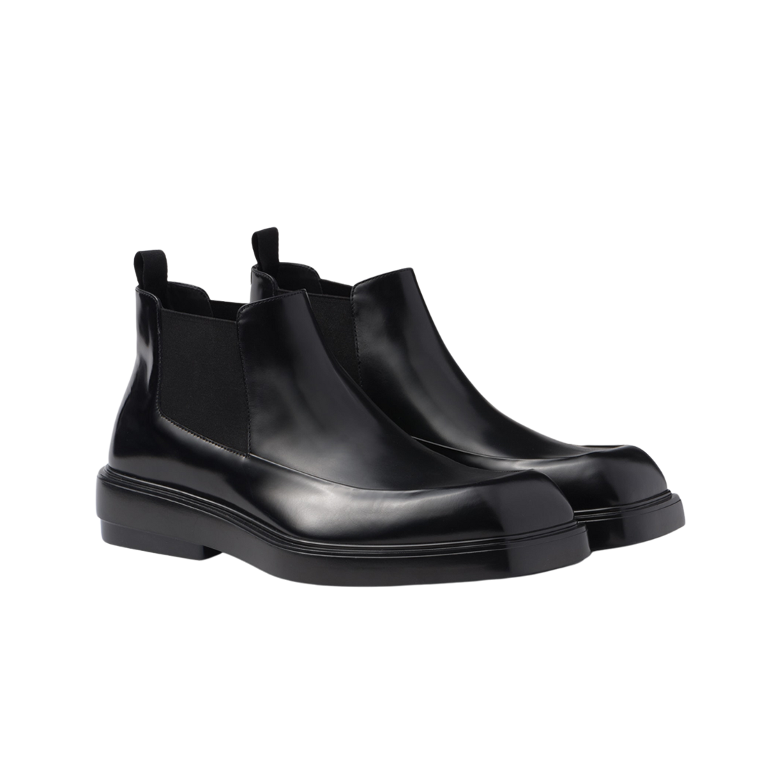 프라다 브러쉬드 가죽 첼시 부츠 블랙
