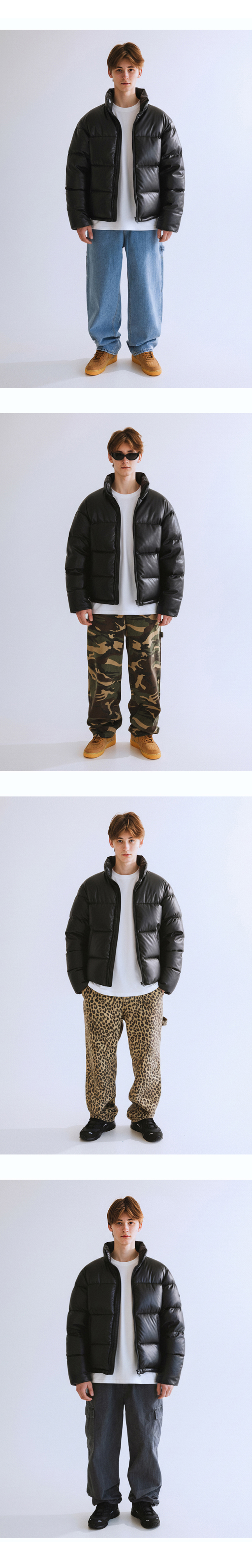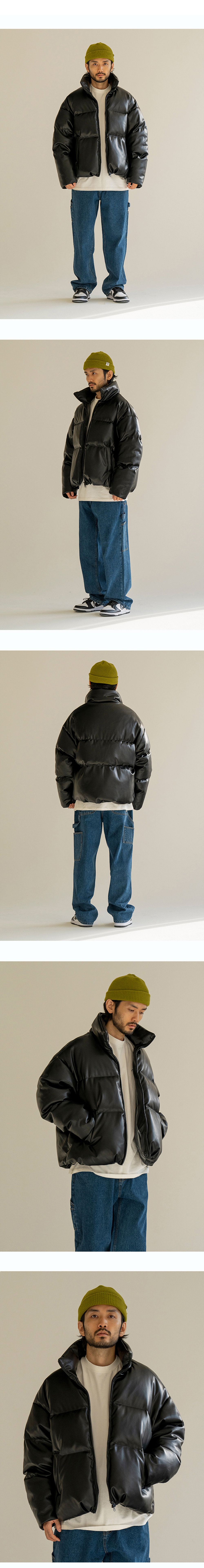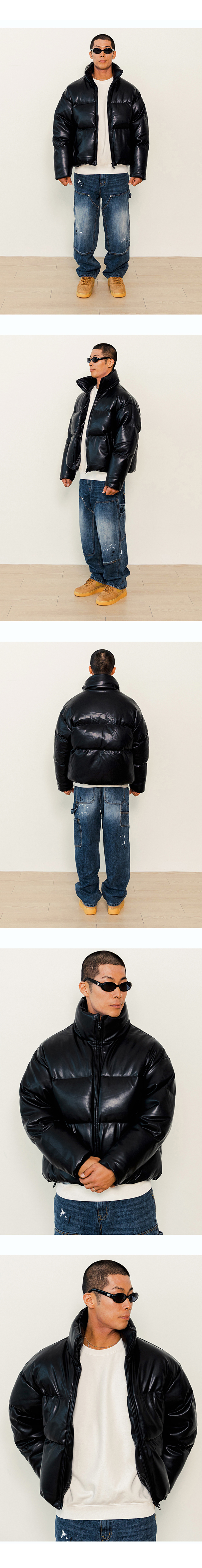 큐티에잇 가먼츠 신세틱 레더 덕 다운 숏 패딩 블랙