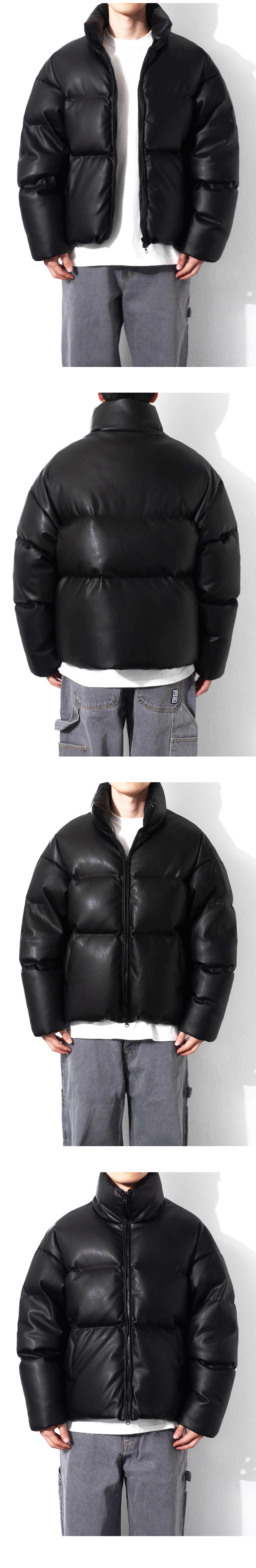 큐티에잇 가먼츠 신세틱 레더 덕 다운 숏 패딩 블랙