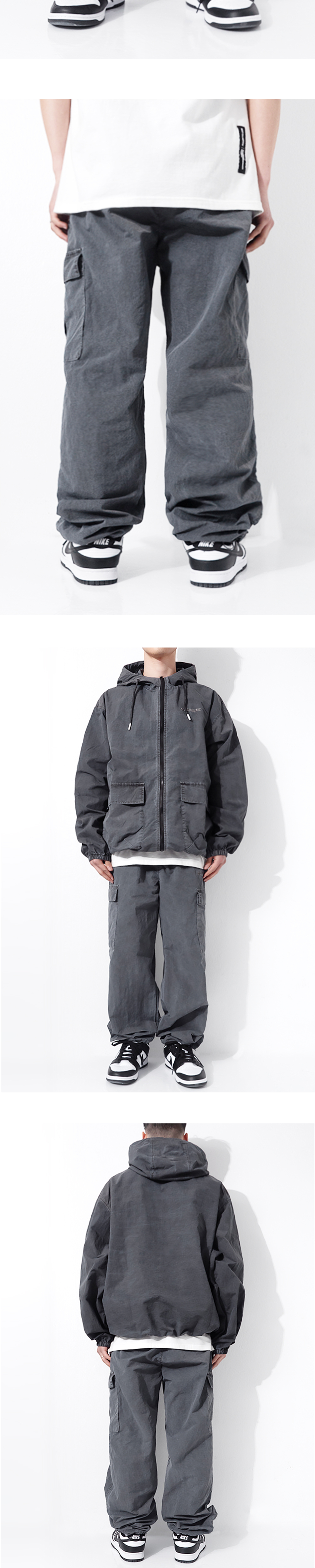큐티에잇 가먼츠 피그먼트 나일론 카고 팬츠 차콜