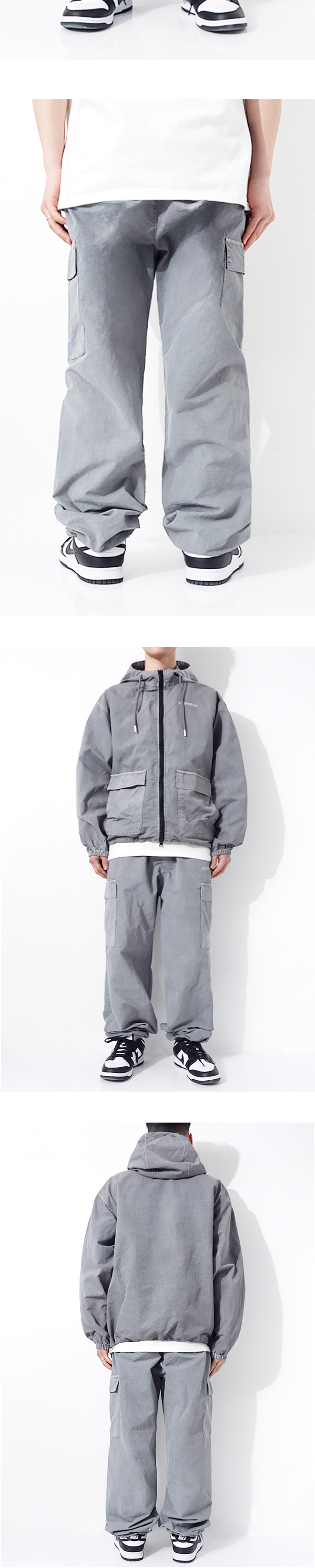 큐티에잇 가먼츠 피그먼트 나일론 카고 팬츠 그레이