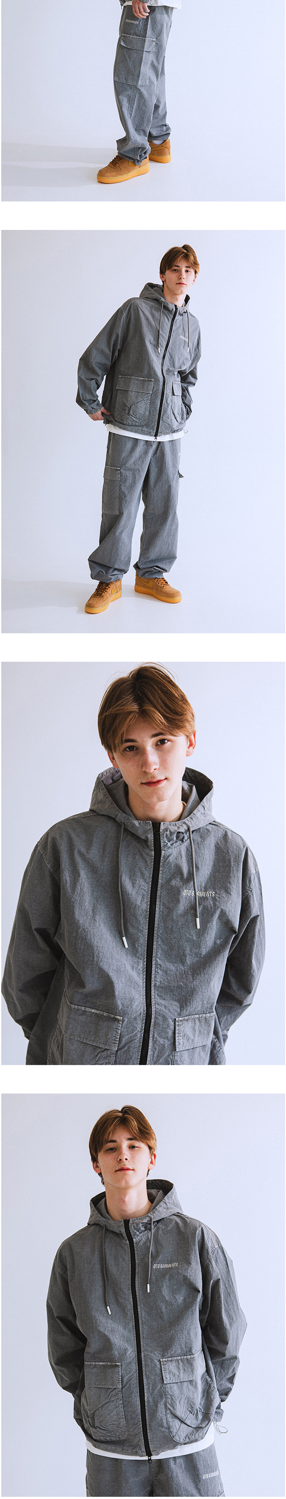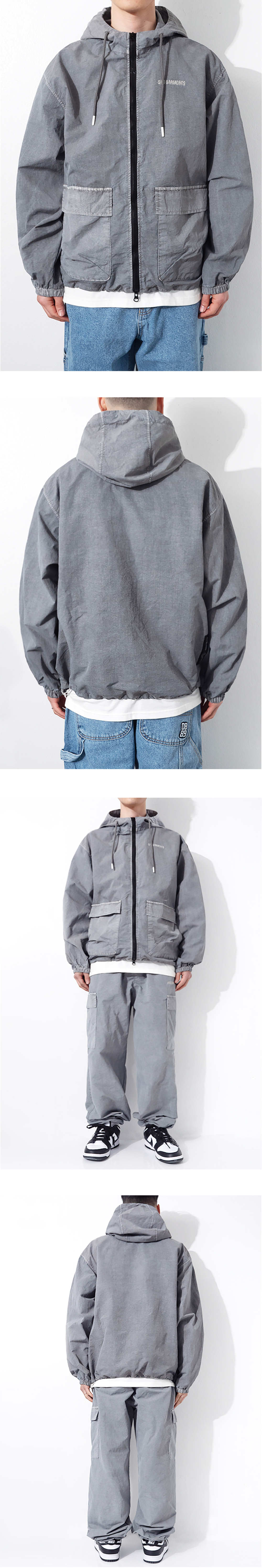 큐티에잇 가먼츠 피그먼트 후디 윈드브레이커 그레이