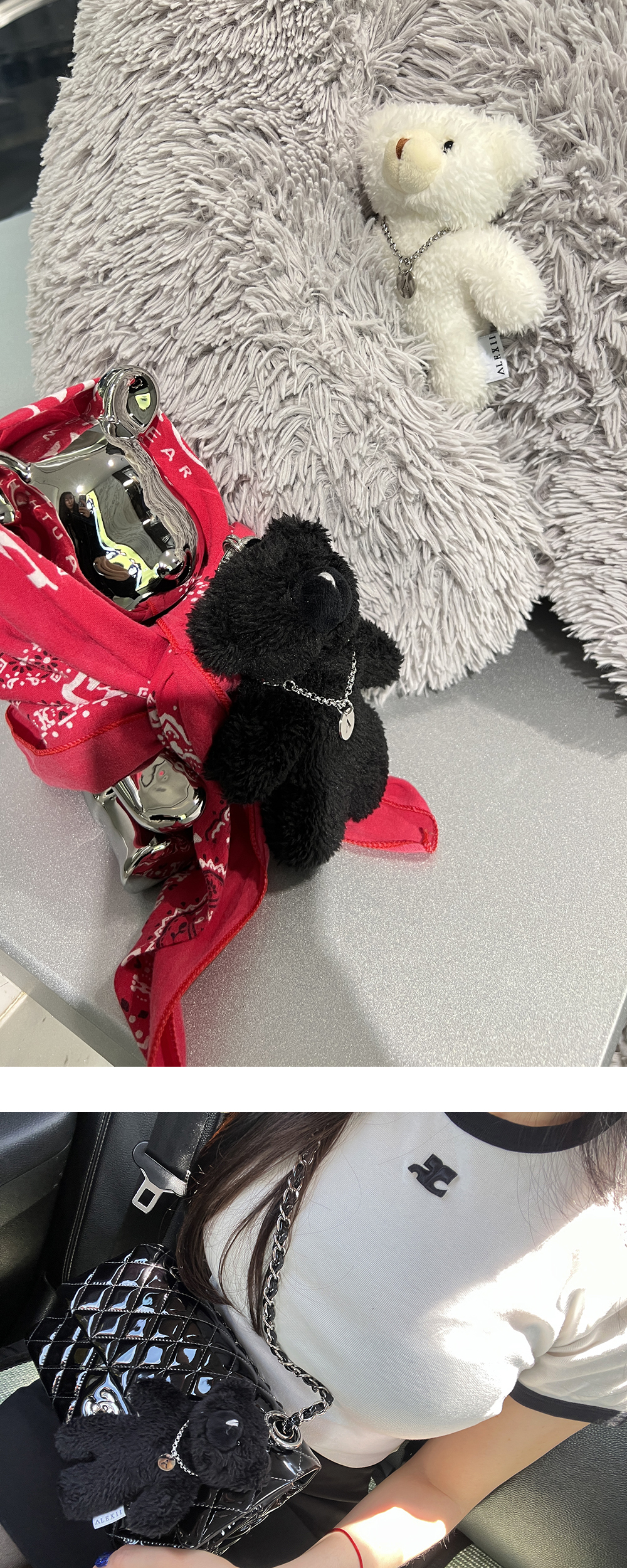 알렉시의 A자 펜던트 목걸이를 한 더티가공을 하지 않은 기본형 곰돌이입니다. 목걸이는 걸고리가 있어 탈부착이 가능합니다. - BLACK - POLYESTER 100% - 'A' LOGO DETACHABLE NECKLACE - SURGICAL STEEL HOOK CLOSURE - ZINC + RHODIUM PLATING