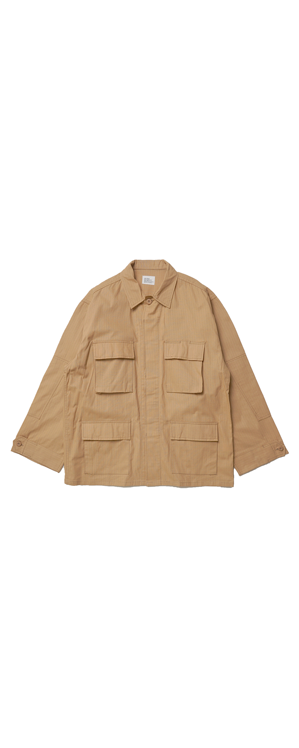 캐주얼하게 입기 좋은 BDU자켓 입니다. BDU란 Battle Dress Uniform의 약자로 전투복이란 뜻입니다. 전면 버튼은 바디 컬러에 맞춘 밀리터리버튼입니다. 제일 첫단추 이외에는 플랩안에 감추어지는 디테일입니다. 양쪽가슴과 사이드에 총 4개의 플랩 포켓이 디자인되었으며 왼쪽 가슴 포켓에는 플랩을 닫은 상태에서도 펜을 꽂을 수 있도록 되어 있습니다. 팔꿈치 부분은 이중지의 더블엘보 사양으로 내구성을 더했습니다. 얇고 단단한 조직의 립스탑 원단을 사용해서 처음은 빳빳하지만 착용할 수록 부드러워지는 경년 변화를 느끼실 수 있습니다. 모든 계절에 착용할 수 있는 활용성이 좋은 아이템입니다. 루즈핏 제품으로, 착용시 L 사이즈가 105 사이즈 정도입니다.