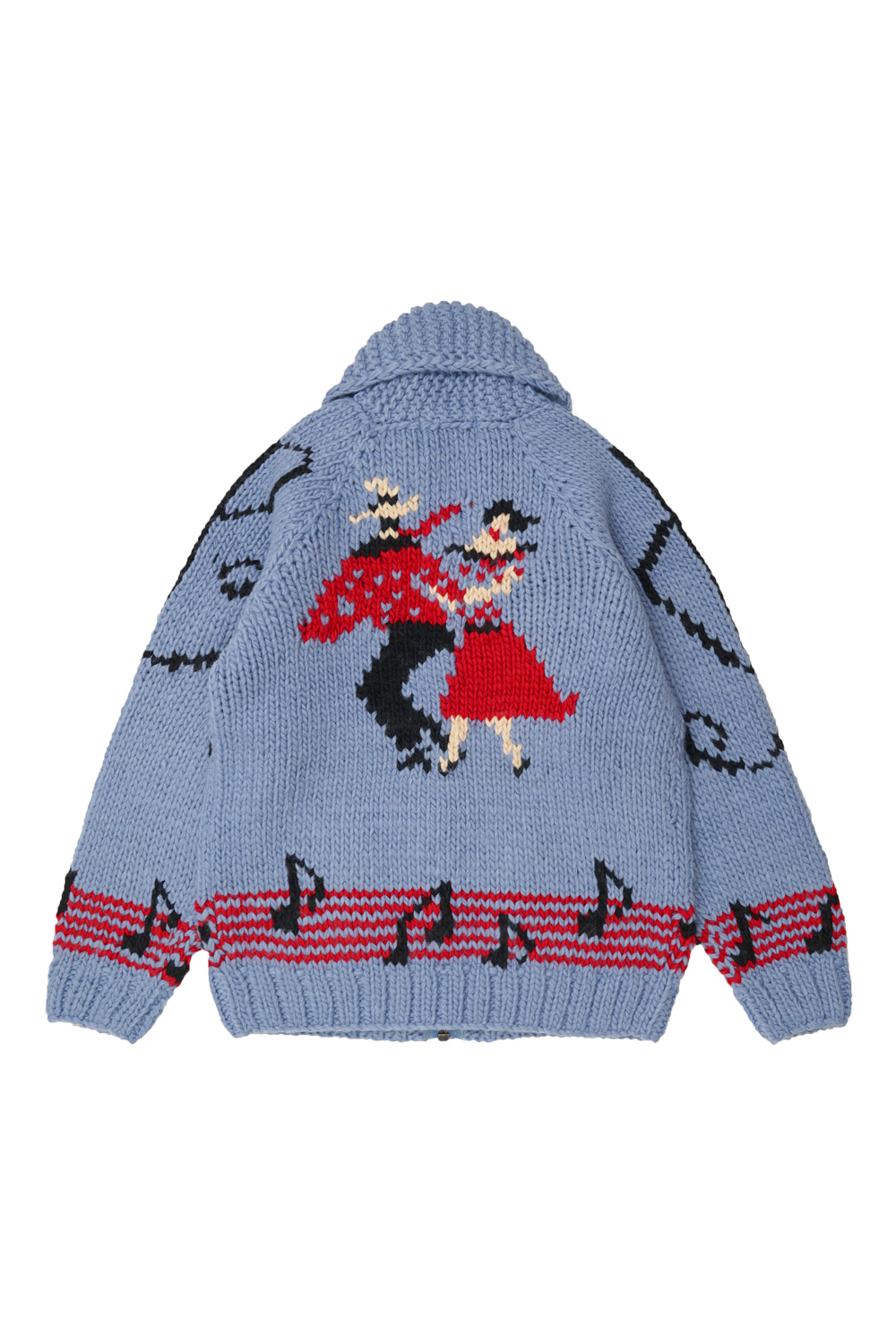 손뜨개질로 제작된 코위찬 스웨터입니다. 기계 뜨개질과는 차원이 다른 매무새와 착용감을 느낄 수 있습니다. 등판에는 레어한 댄스무늬가 디자인 되었습니다.