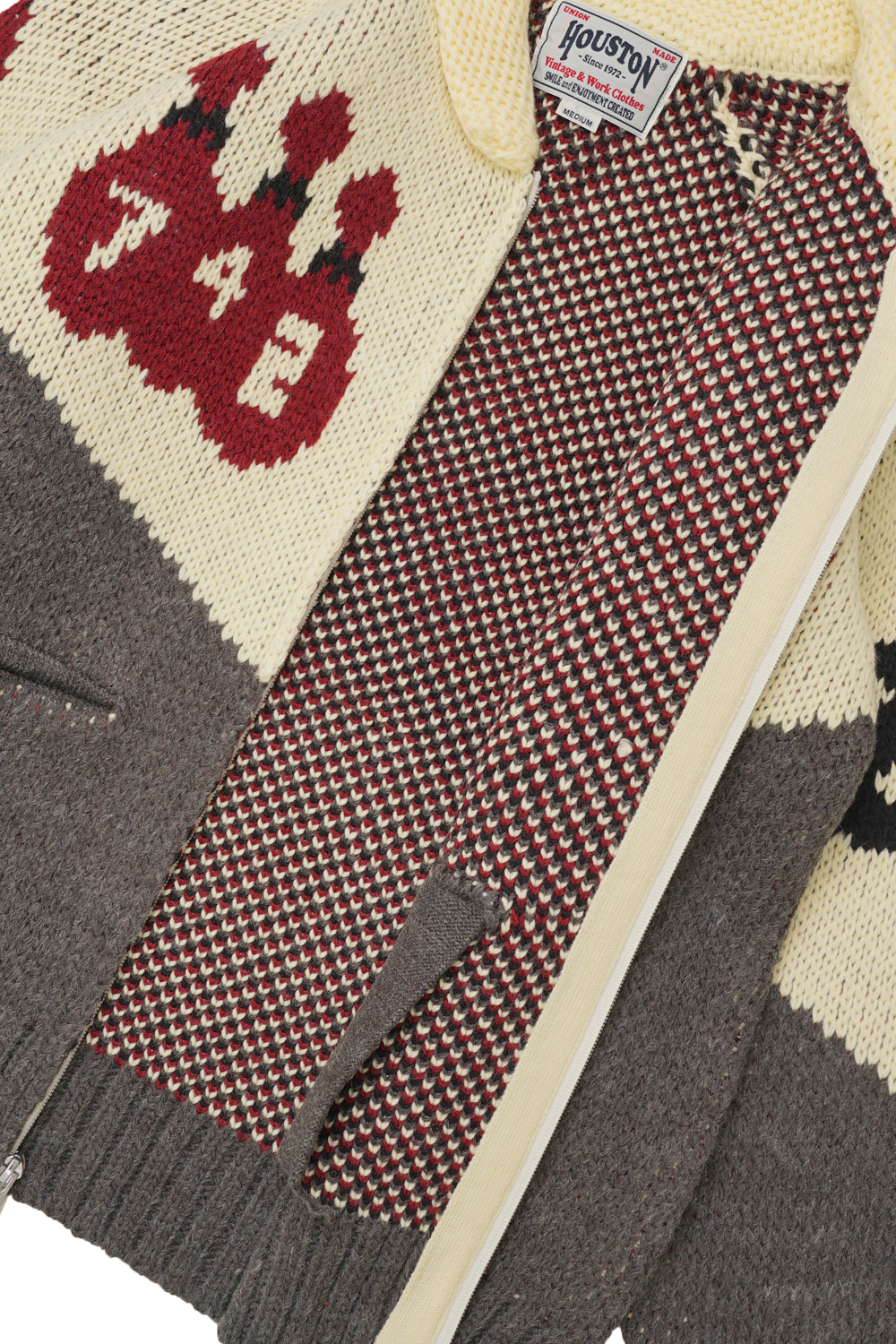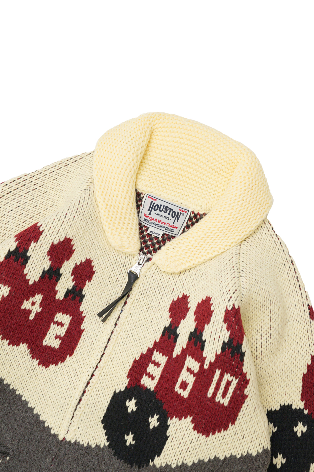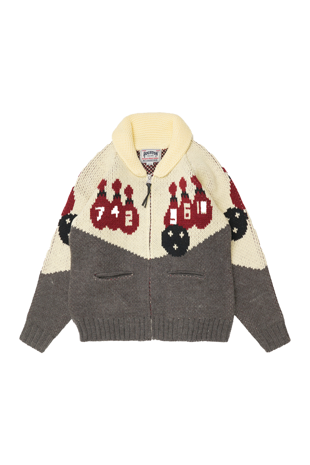 휴스턴이 자랑하는 볼링 모티브 디자인의 코위찬 니트 가디건입니다. 1950-60년대에 흔히 볼 수 있었던 무늬를 리바이벌해서 그 당시의 멋과 재미를 가진 제품입니다.