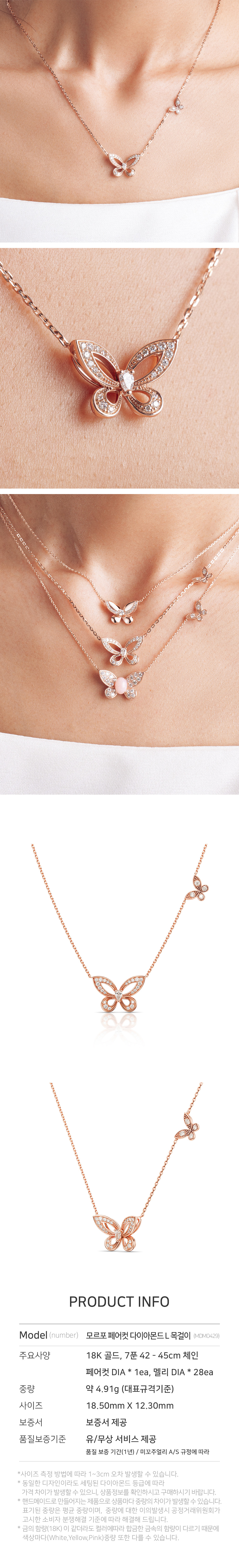 미꼬 모르포 페어컷 다이아몬드 L 목걸이 핑크 골드