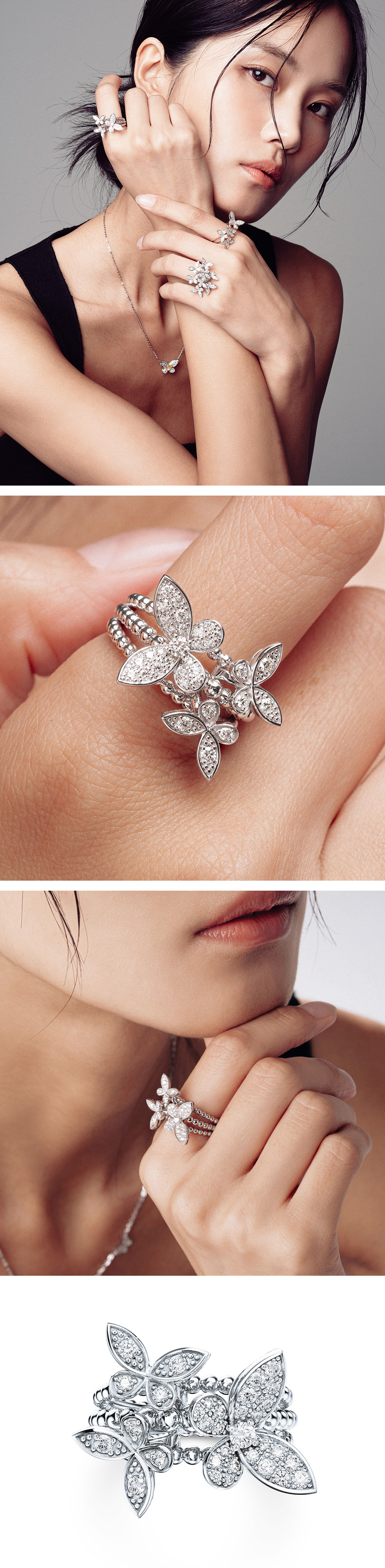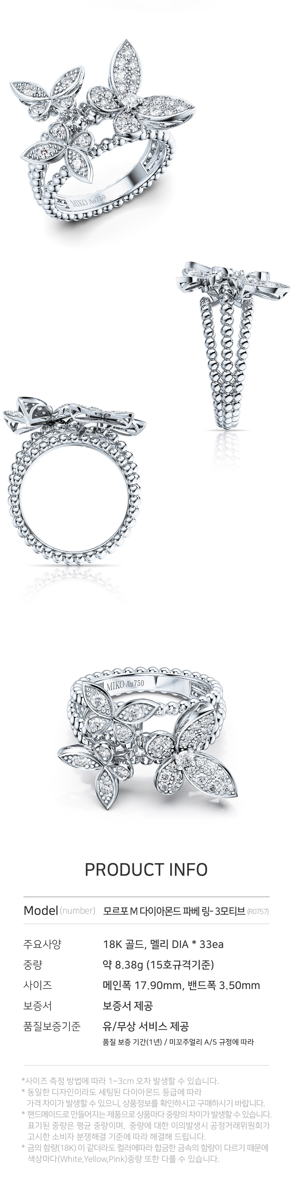 미꼬 모르포 M 다이아몬드 파베 링 3모티브 화이트 골드