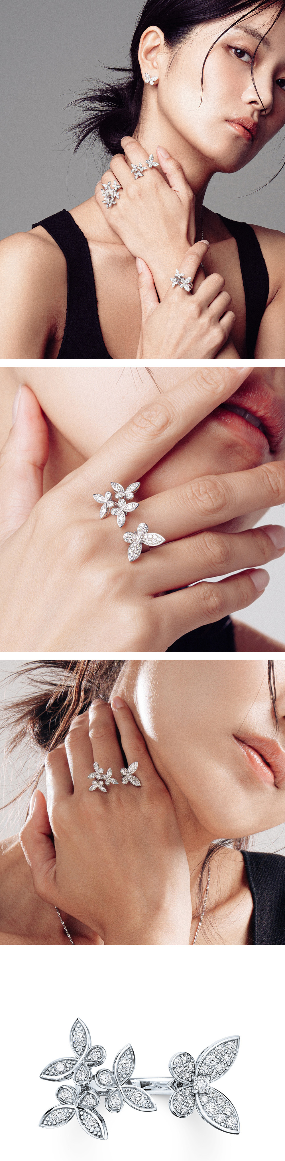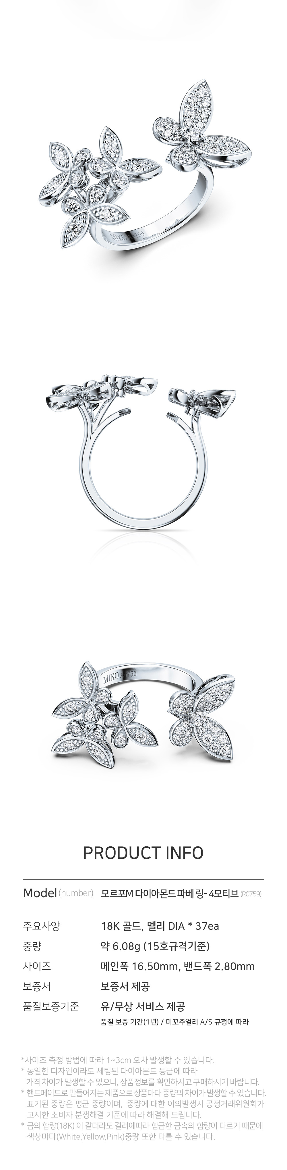 미꼬 모르포 M 다이아몬드 파베 오픈링 4모티브 화이트 골드