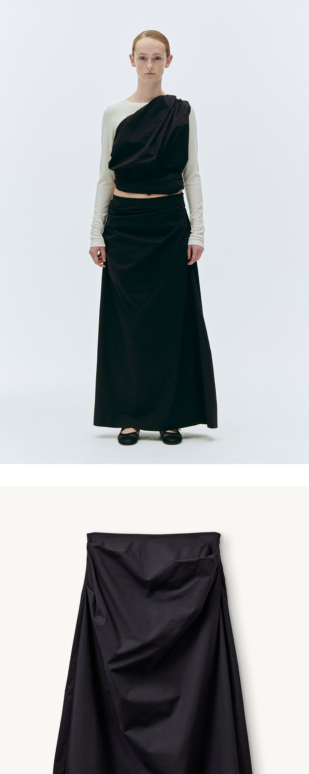 자연스러운 드레이핑과 맥시한 기장이 매력적인 더가먼츠의 드레이프 스커트입니다. - 사이드 지퍼 여밈 - 오가닉 코튼 소재 사용