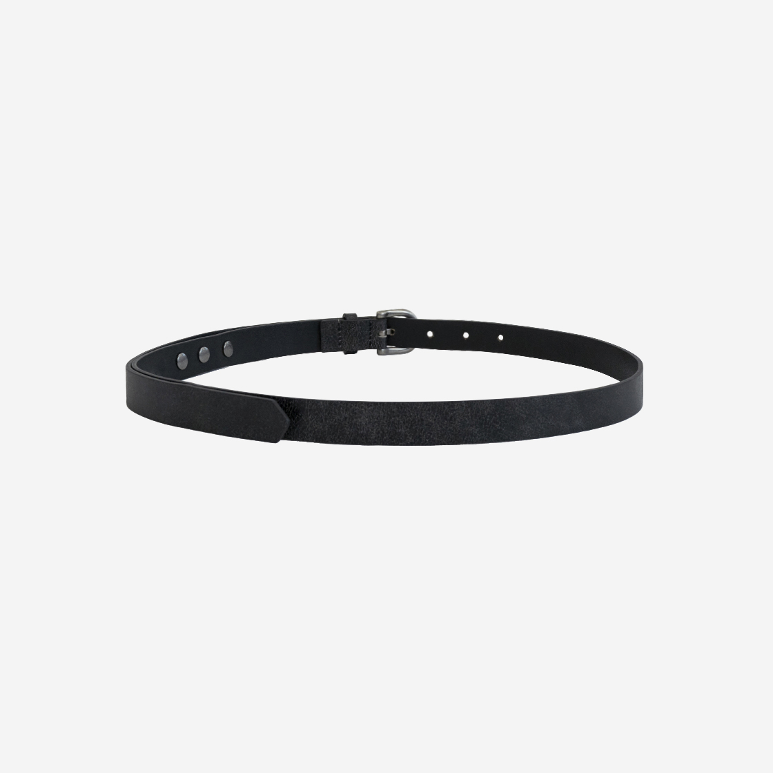 leather belt 001 plain - black 넉넉한 길이감의 레더 벨트. 티셔츠 아래로 키링을 레이어링 할 수 있는 사이드 디테일이 있습니다. 빈티지한 질감이 강조되는 천연 소가죽 사용. 플레인 및 젬스톤 타입으로 구성. - Cow Leather - 총길이 118cm, 폭 2cm - 허리둘레 29~38인치 조절 가능 - 가죽 전문점 케어 권장 *모델: 170 중반 / 마른 체형
