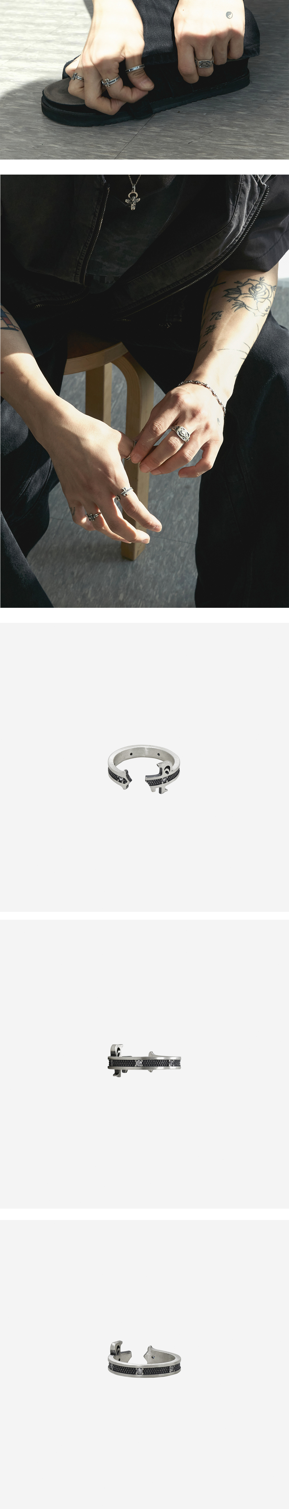 * 본 제품은 사전 예약 주문 제품으로, 3월 4일 (수) 15:00 ~ 3월 8일 (일) 15:00까지 프리오더 접수를 진행합니다. * 구매건은 4월 13일 (월) ~ 4월 15일 (수)부터 순차적으로 발송 예정입니다. - 925 silver rings. 기호에 따라 여러 링의 레이어링으로 보다 밀도 높게 연출할 수 있습니다. -제품에 마킹된 925 표기는 함량 92.5%를 표기한 법정 순은 표기법입니다. -무른 성질 소재 특성상 가벼운 완력으로 변형 및 손상이 발생될 수 있으며, 잦은 사이즈 조절 시 손상될 수 있습니다. -순은 제품 특성상 화학 성분,습기가 많은 곳, 땀 등에 의해 변색이 발생할 수 있습니다. 보관 시 지퍼백 등에 밀봉 보관 부탁드립니다. -제작 과정에서 발생되는 자연스러운 공정 현상은 불량 사유에 해당하지 않습니다. (미세한 스크래치 등)