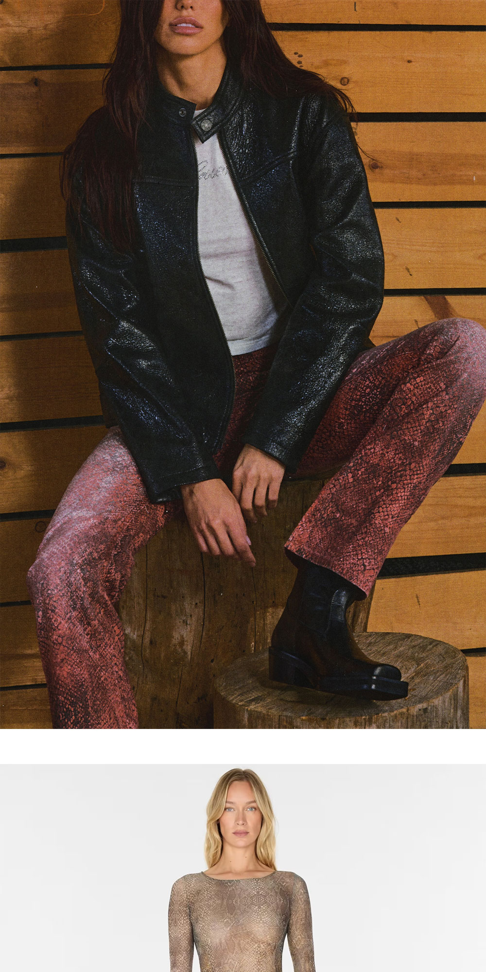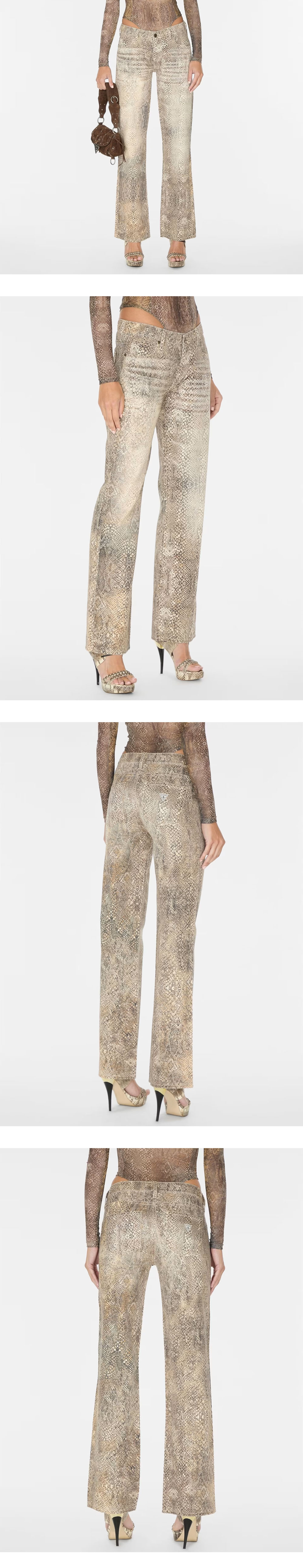 뱀 가죽 프린팅이 매력적인 게스 USA의 코튼 데님 팬츠입니다. - 레귤러 핏 - 미드 라이즈 - 스크린 뱀 가죽 프린팅 디자인 *모델 Brown 27 size 착용