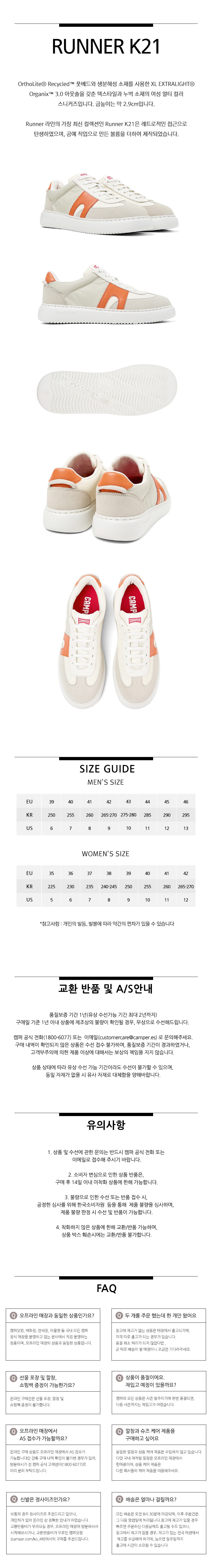 캠퍼 여성 러너 누벅 스니커즈 화이트