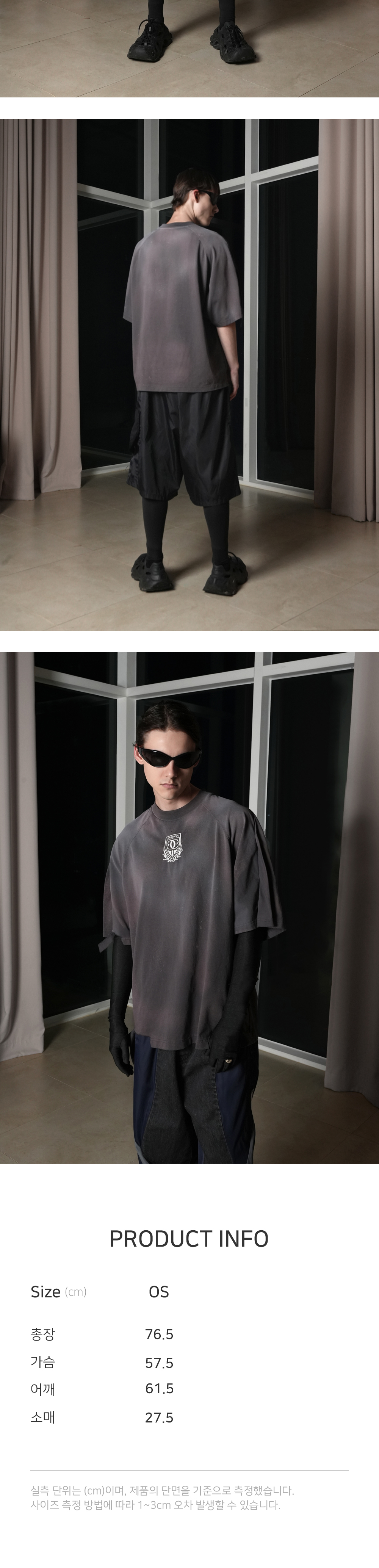 [PRODUCT INFORMATION] 제조국: 한국 (Made in KOREA) 소재: 코튼 100% (Cotton 100%) -오버사이즈 핏 (Oversized fit) -라운드 넥 (Crew neck) -숏 슬리브 (Short sleeves) -앞면의 앰블럼 자수 (Iconic city logo printed) -디스트로이드, 워시드 아웃 이펙트 (Destroyed, washed out) -레이어드 타입 소매 디테일 (Layered sleeves effect) [Model Spec & Size] Man model is 181cm, and wearing a Size OS