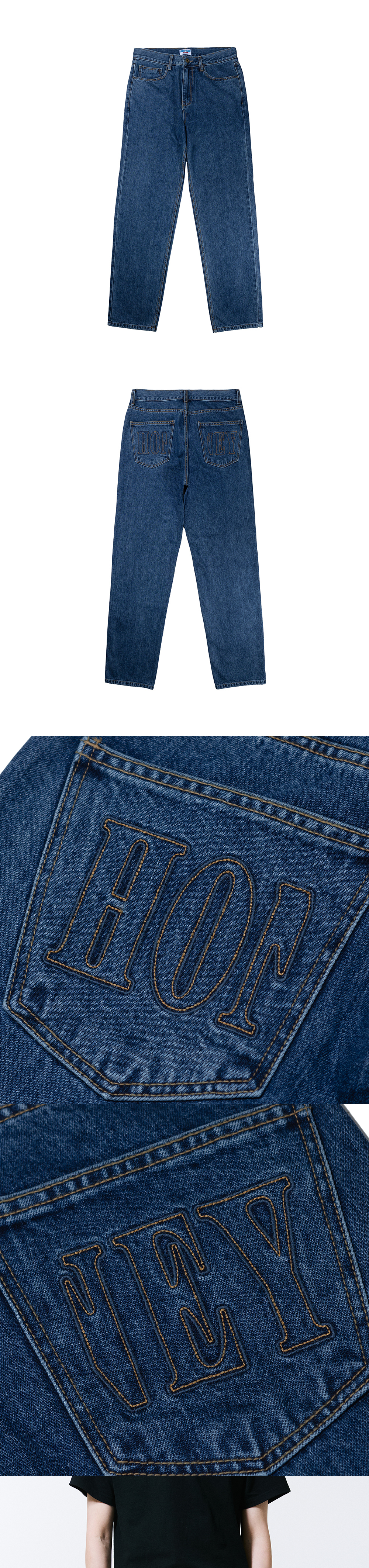 HONEY SCOOP HOUSE HONEY STITCH DENIM BLUE 100% COTTON APPLIQUE ON BACK POCKETS ACID WASH WITH OVER DYE ZIP FLY 5-POCKET STYLING A SLIGHTLY BAGGY FIT RELAXED FIT *MACHINE WASH COLD - NORMAL CYCLE. WASH INSIDE OUT WITH LIKE COLORS, DO NOT BLEACH, TUMBLE DRY MEDIUM, HOT IRON, DRY CLEAN POSSIBLE *MODEL 180CM / SIZE M