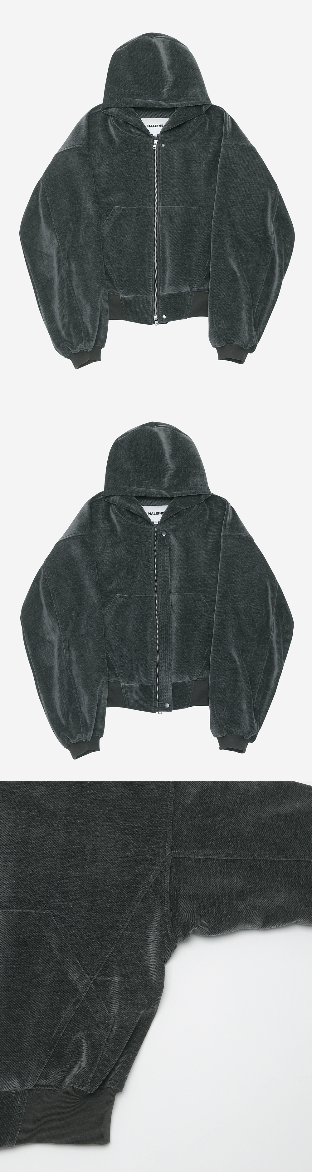 알렌느 크롭드 벨루아 집업 후드 아이론그레이