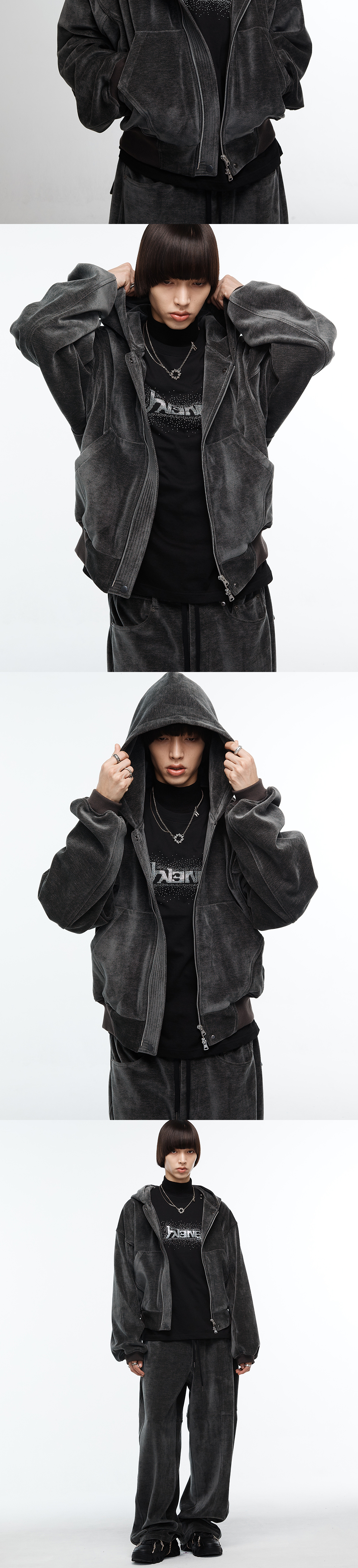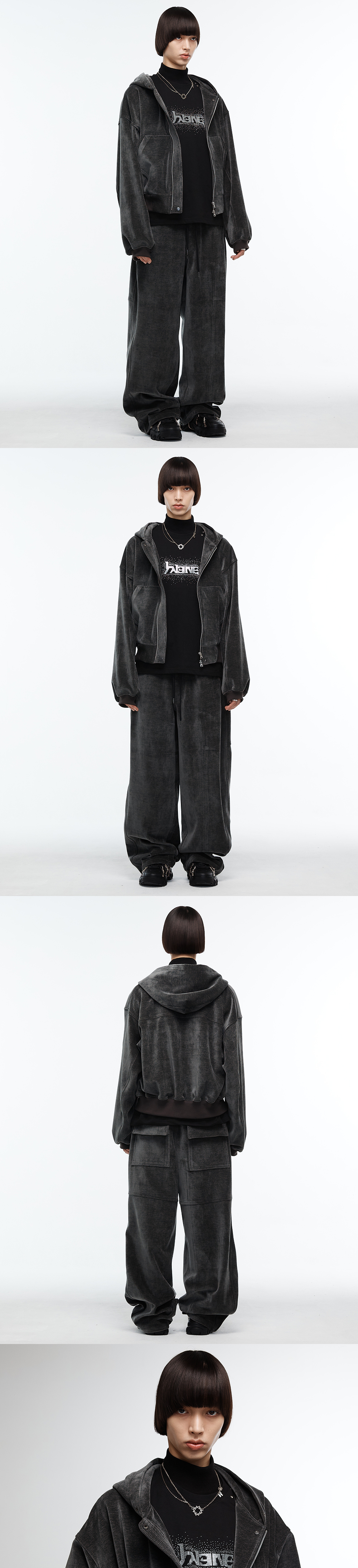 Haleine Cropped Velour Zip Up Hoodie Irongrey (VT308)
