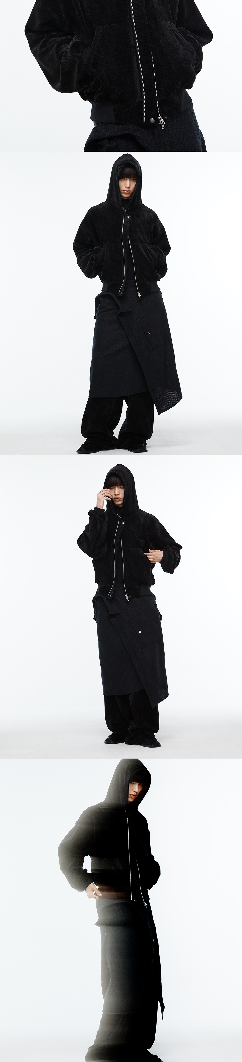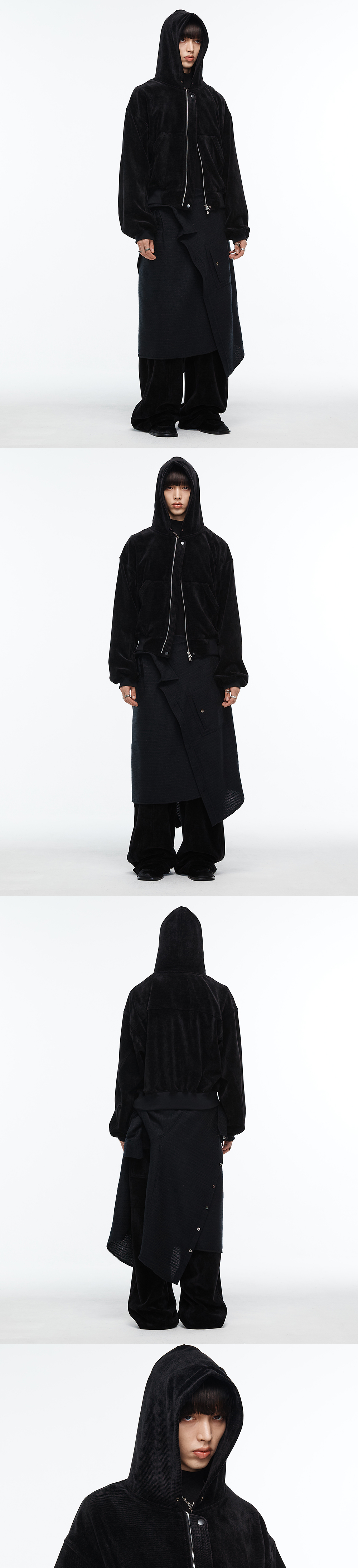 입체적인 절개 라인으로 유니크한 포인트를 준 후드 집업입니다. 부드러운 벨루어와 사선 방향의 코듀로이가 믹스된 느낌이 매력적인 소재가 사용되었으며, 크롭하면서도 넉넉한 핏 감으로 다양한 스타일에 매치하기 좋은 제품입니다. -DETAIL- 크롭 핏 몸판 사선 절개 몸판 및 등판 절개와 이어진 소매 절개 라인 후드 아일렛 디테일 -model- 184cm / 가슴둘레 83cm / 허리둘레 70cm / 엉덩이둘레 90cm - 2사이즈 착용