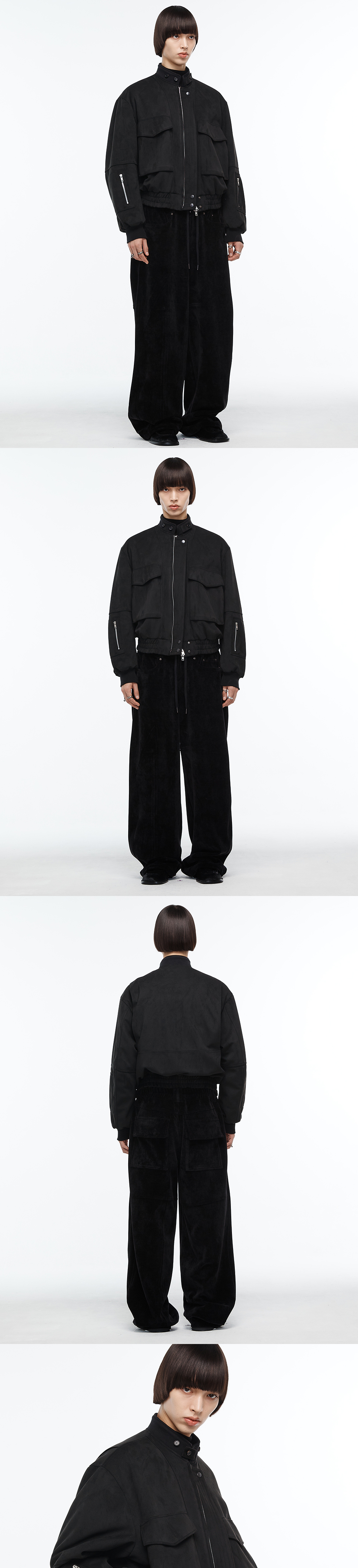 도톰하고 매트한 질감의 페이크 스웨이드로 제작된 봄버 자켓입니다. G-8 밀리터리 점퍼를 재해석한 디자인으로 절개 패턴과 2WAY포켓 및 패치포켓 등을 사용하여 유니크함을 더했습니다. 3온스 안감을 사용하여 적당한 볼륨감과 보온성을 주어 초겨울까지 데일리로 착용하기 좋은 제품입니다. -DETAIL- 입체 절개 립소재의 스탠드 카라 및 벨티드 디테일 2WAY 플랩 지퍼 포켓 소매 패치 포켓 등판 액션 플리츠 플라켓을 활용한 2WAY 연출 -model- 184cm / 가슴둘레 83cm / 허리둘레 70cm / 엉덩이둘레 90cm - 2사이즈 착용
