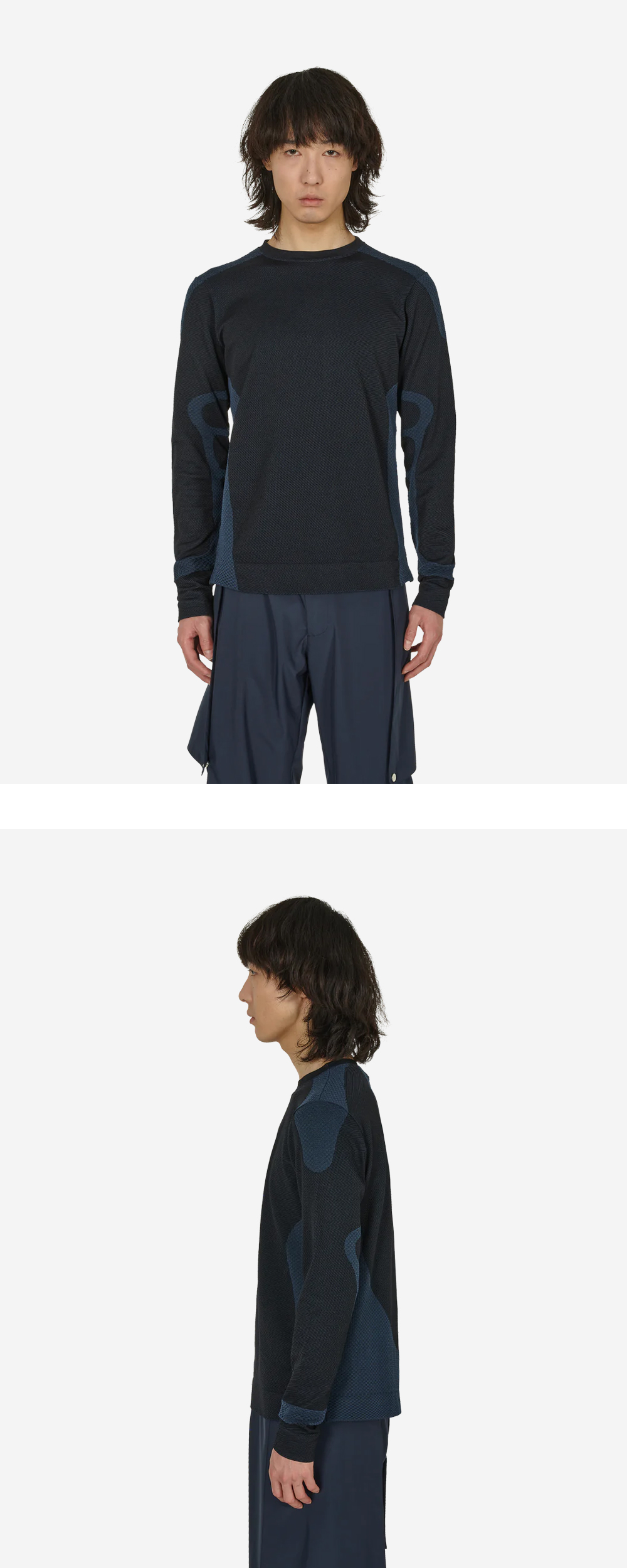 스포츠웨어에서 영감을 받은 패널 디테일이 돋보이는 _J.L-A.L_의 라이저 롱슬리브입니다. - 양궁 손목 보호대와 컴프레션 유니폼에서 영감을 받은 패널 디자인 - 고기능의 스포츠웨어 니트 소재 - 핏한 디자인이나, 높은 신축성으로 편안한 착용감