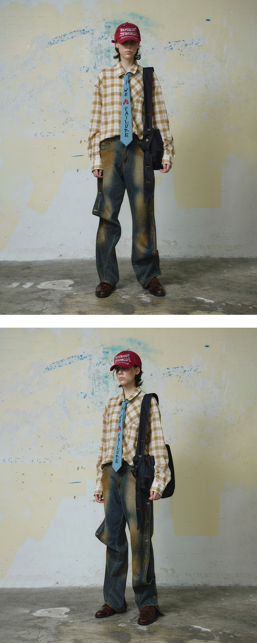 Nylon 60%+Polyester 40% 나일론 넥타이 전면부 잉크 나염 뒤판 로고 라벨 *Model: 175cm / Bust: 32 Waist: 24 Hips: 34.5 (inch)