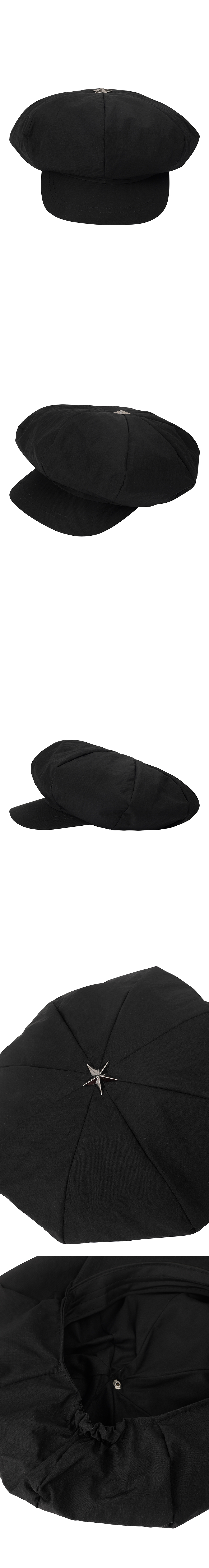 Nylon 60%+Polyester 40% 야구 모자에 영감을 받은 뉴스보이 캡 8 패널 라인 별 모양 리벳 디테일 뒤판 사이즈 조절 고무줄 밴드 디테일 *Model: 175cm / Bust: 32 Waist: 24 Hips: 34.5 (inch) *실제 색상은 제품컷에 가깝습니다
