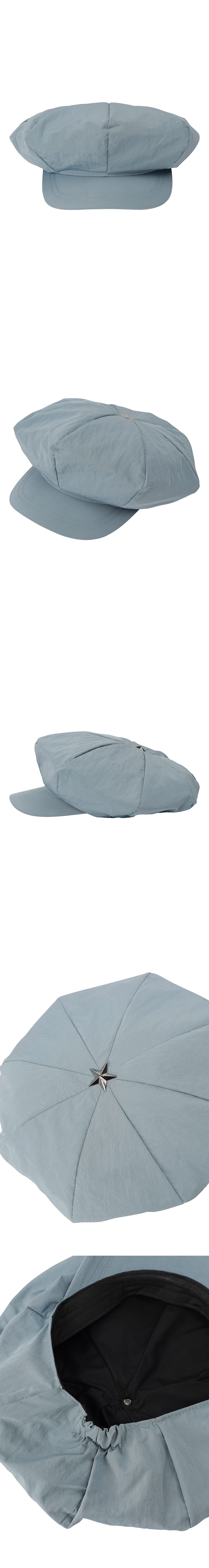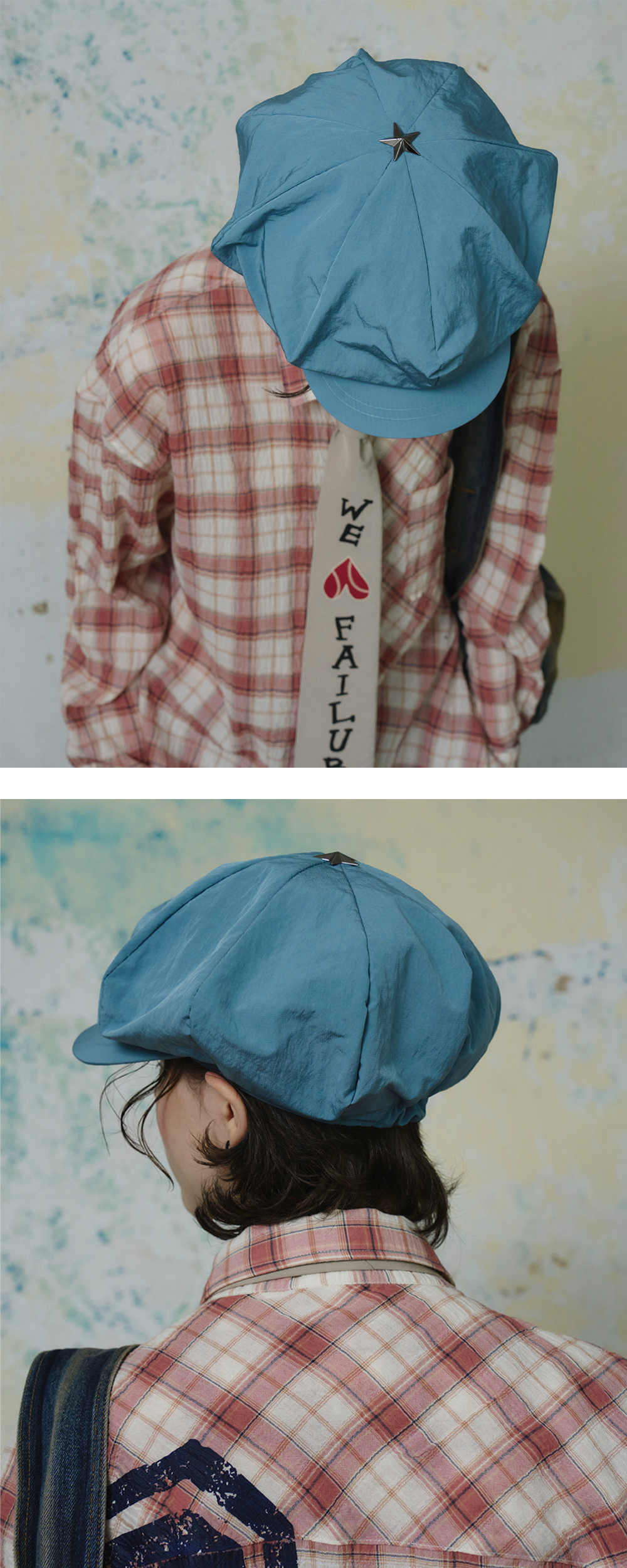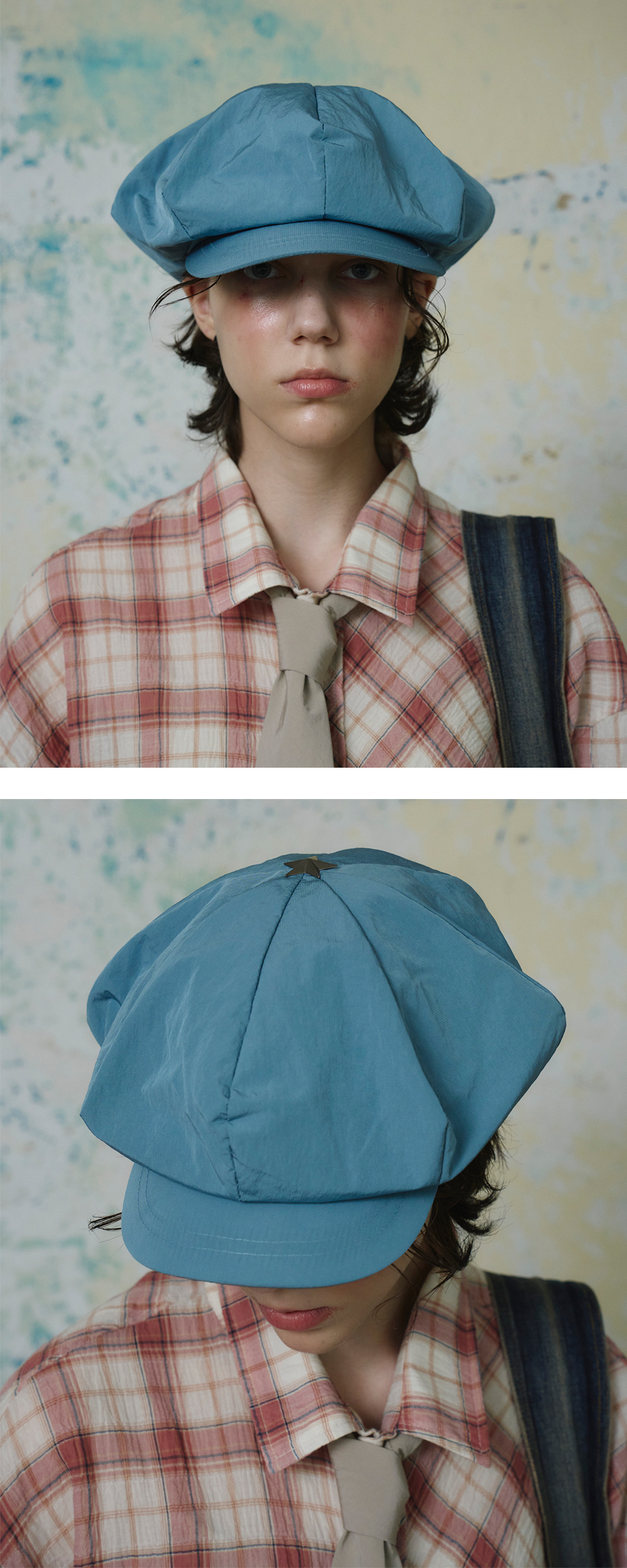 Nylon 60%+Polyester 40% 야구 모자에 영감을 받은 뉴스보이 캡 8 패널 라인 별 모양 리벳 디테일 뒤판 사이즈 조절 고무줄 밴드 디테일 *Model: 175cm / Bust: 32 Waist: 24 Hips: 34.5 (inch) *실제 색상은 제품컷에 가깝습니다
