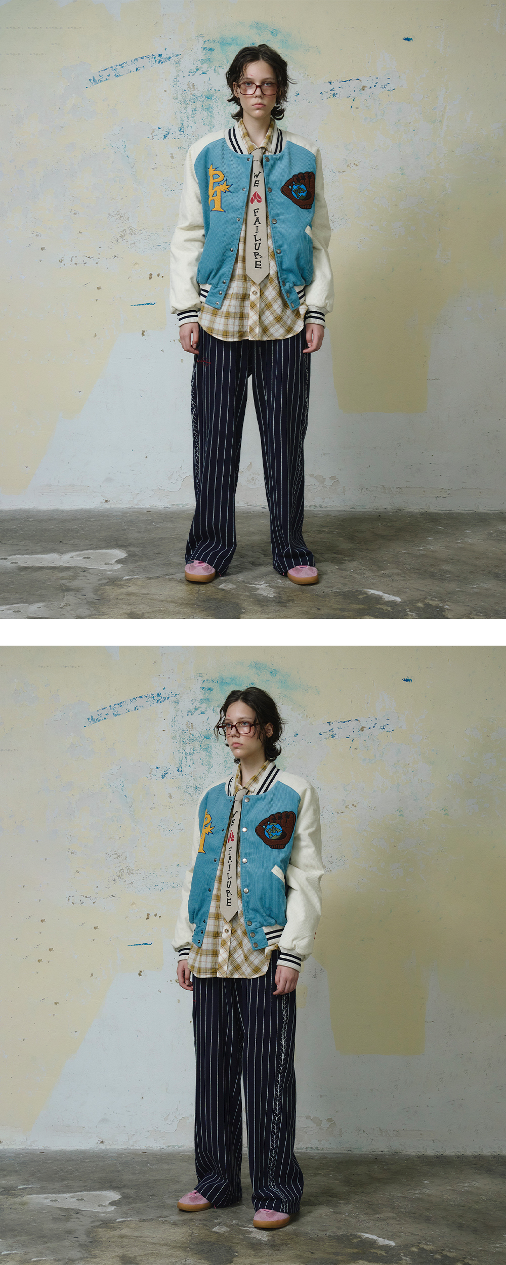 프라블럼올웨이즈 본헤드 볼 스쿼드 바시티 자켓 스카이블루
