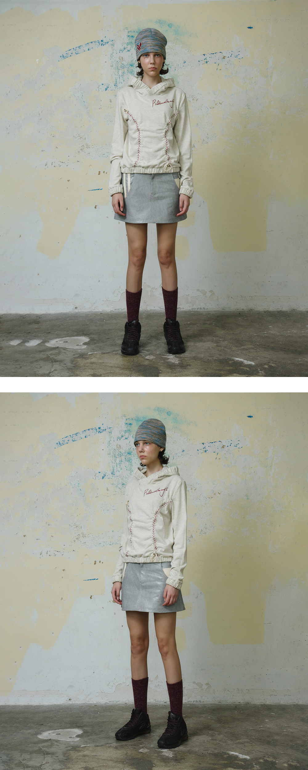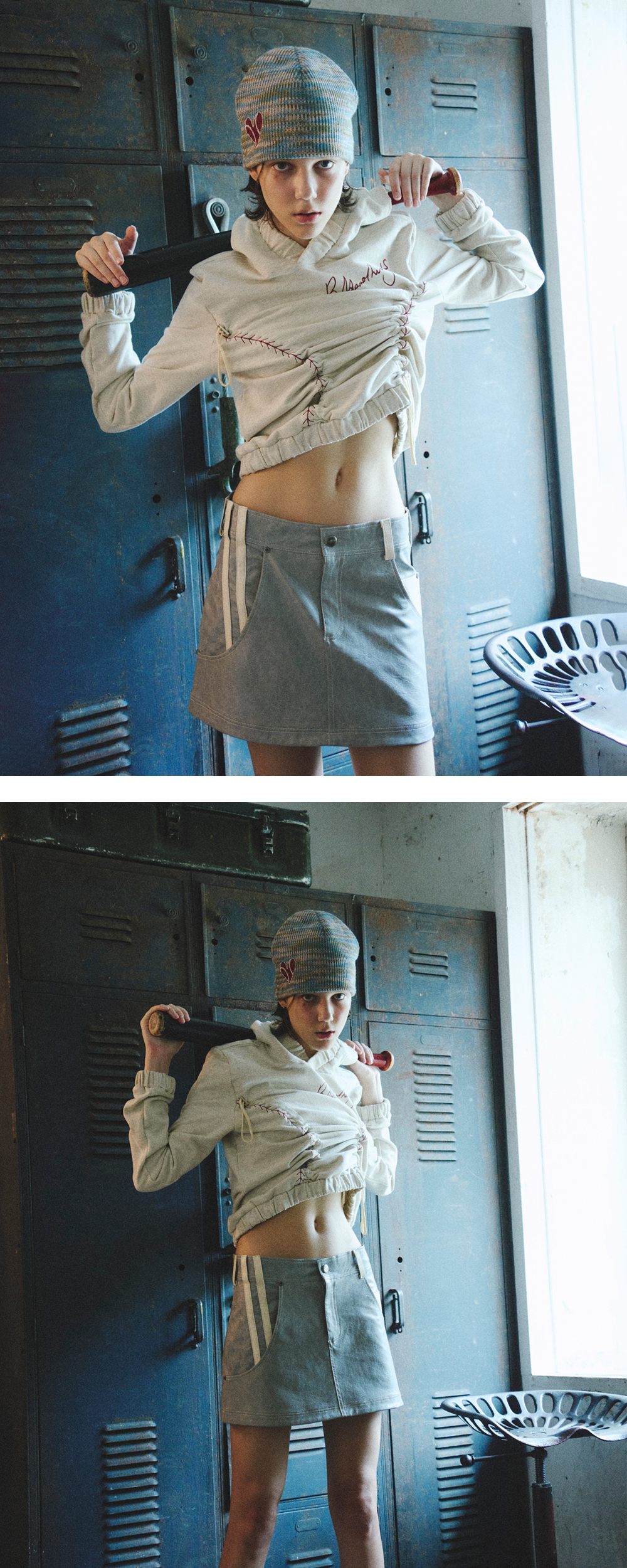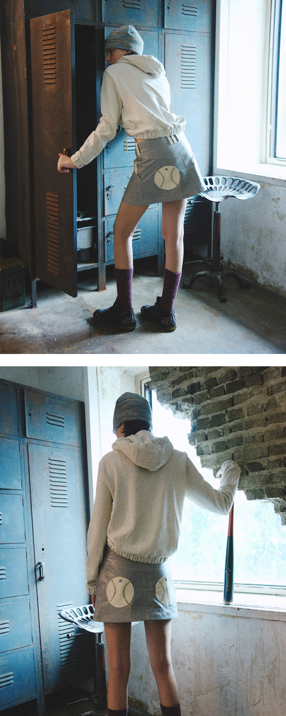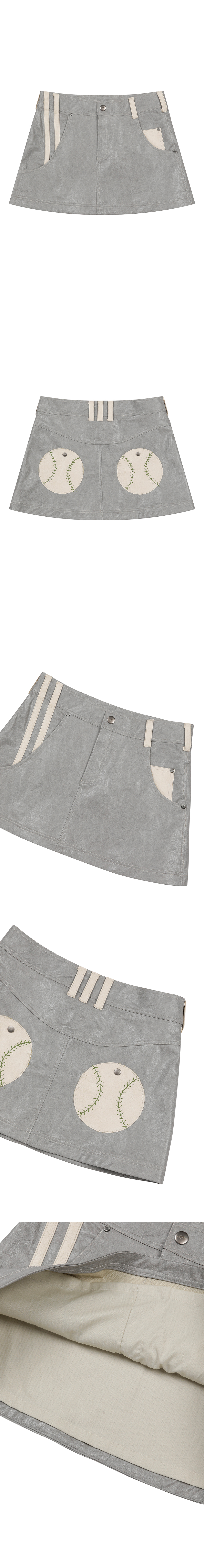 프라블럼올웨이즈 베이스볼 라인 레더 미니 스커트 그레이