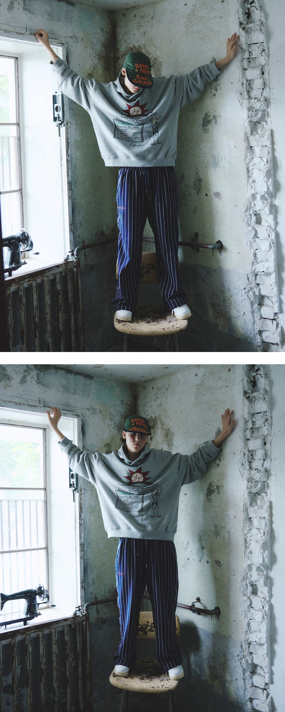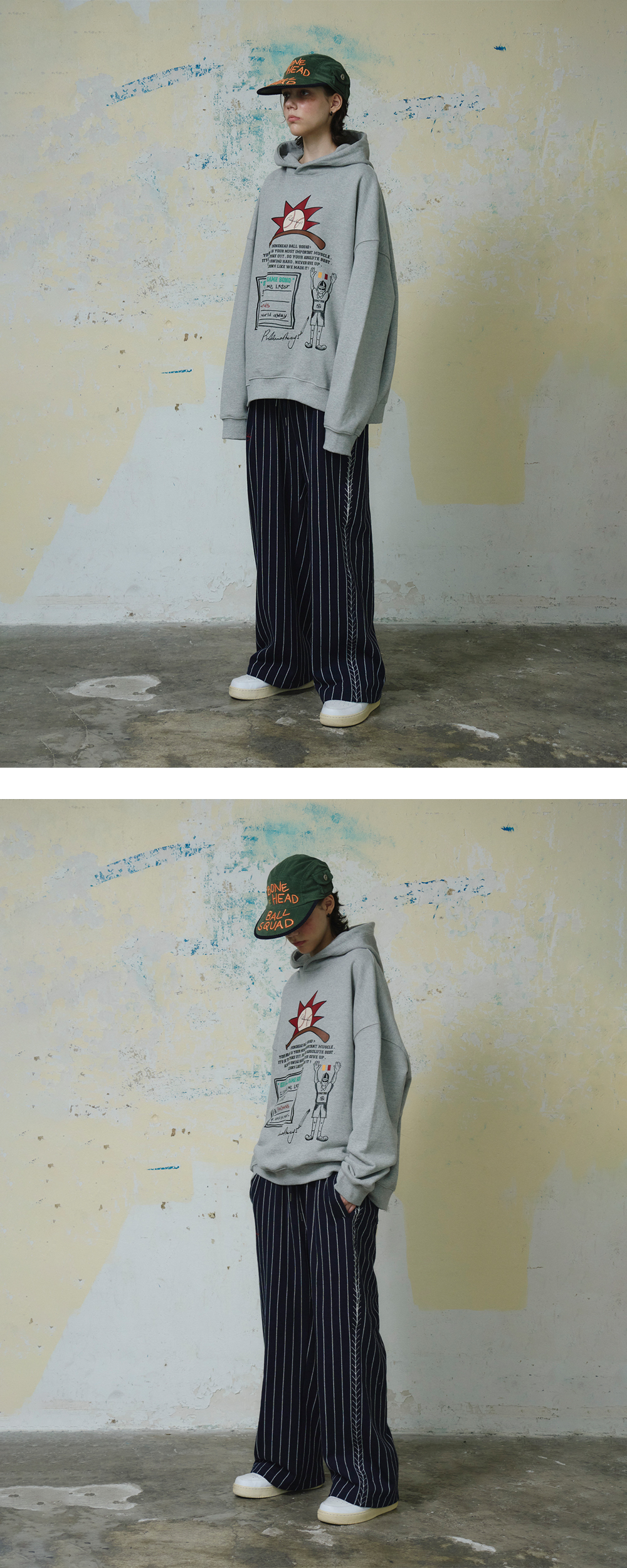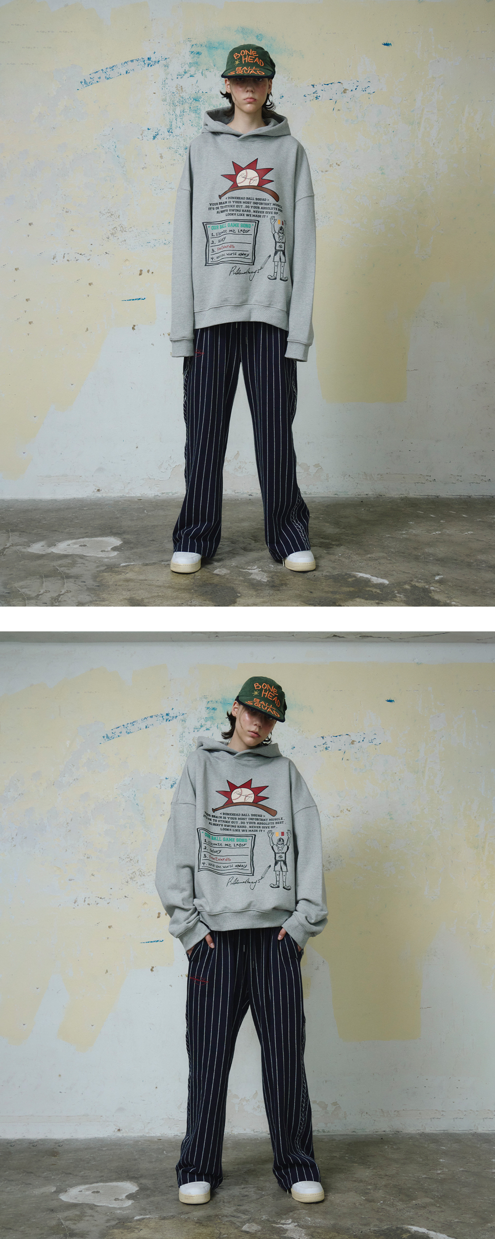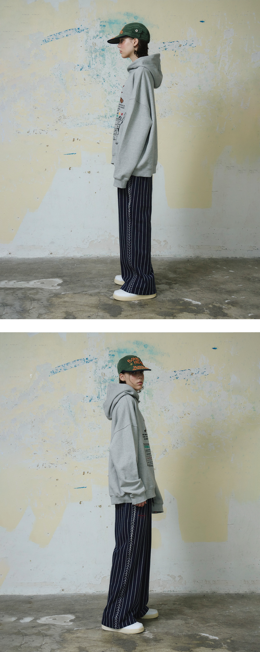 Cotton 100% 와이드 핏 스트라이프 트레이닝 팬츠 사이드 야구공 핸드 스티치 자수 앞판 로고 나염 *Model: 175cm / Bust: 32 Waist: 24 Hips: 34.5 (inch) / Size: Leaf
