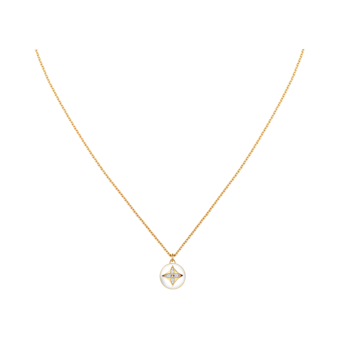 (W) Louis Vuitton Color Blossom Pendant White Agate & Diamonds 18K Yellow and White Gold
