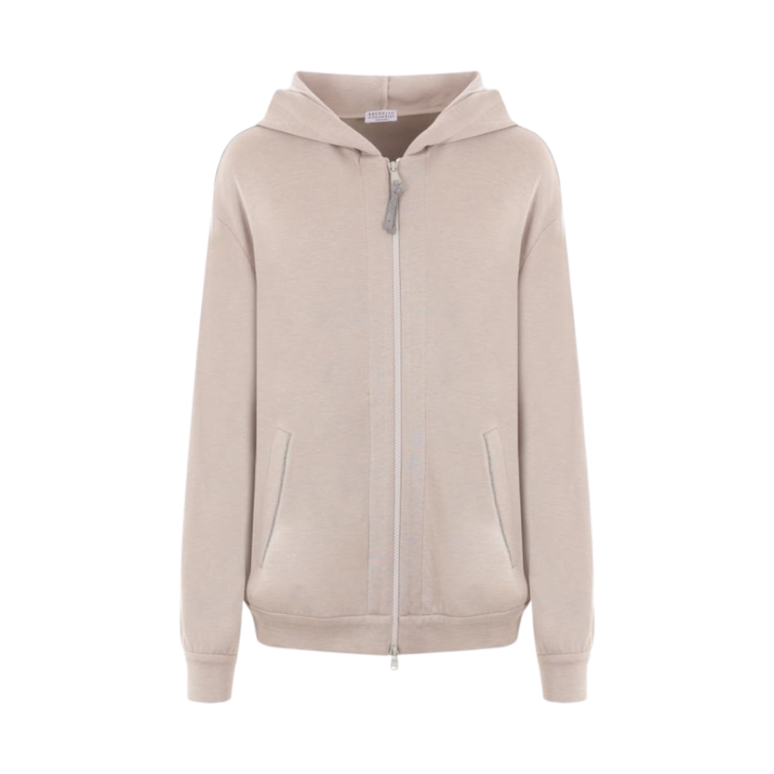 (W) 브루넬로 쿠치넬리 코튼 실크 인터로크 프레셔스 지퍼 풀 후드 스웨트셔츠 베이지