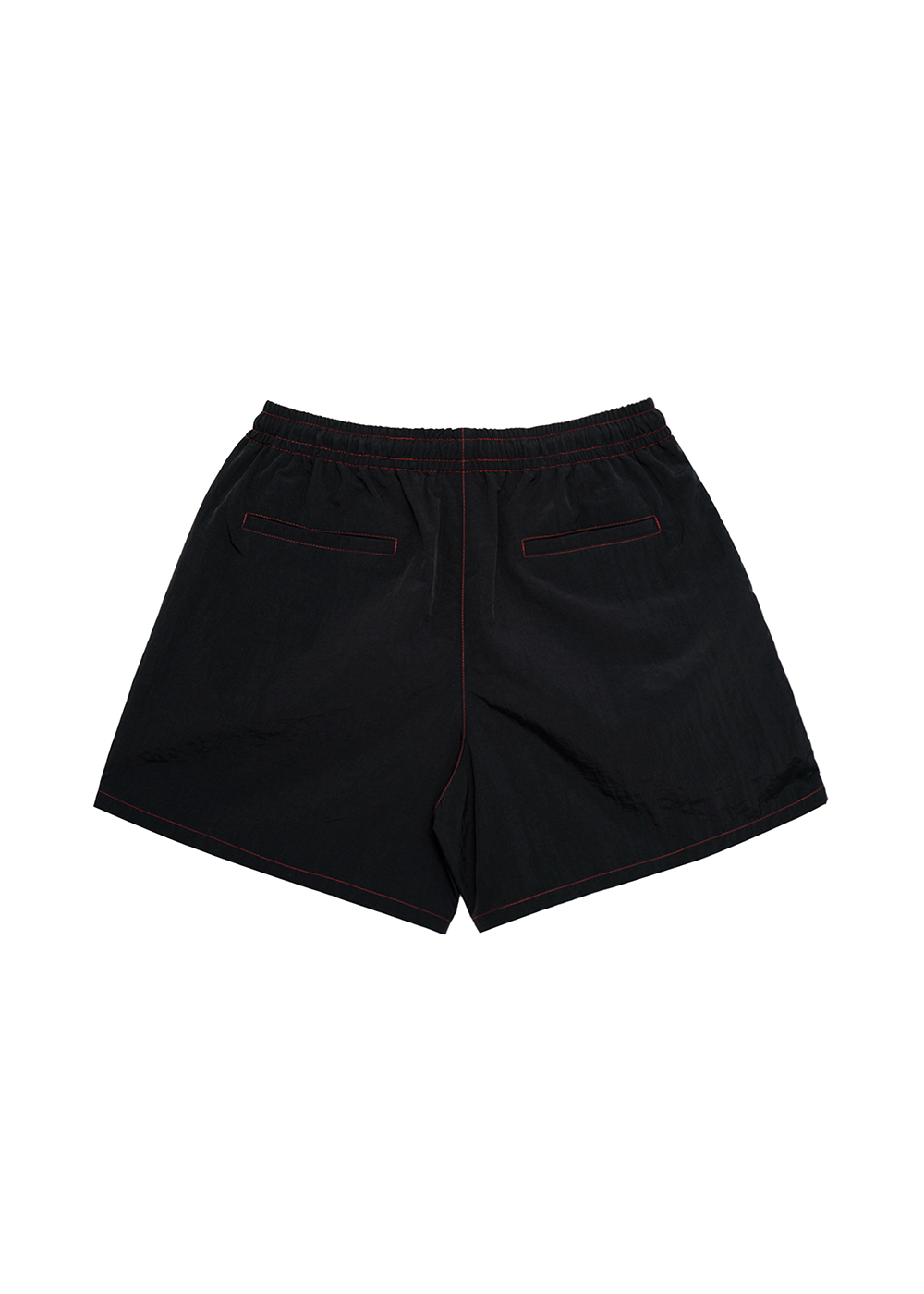 · 스탠다드 핏 · 메쉬 속바지 배치 · 앞/뒤 주머니 · 허리 스트링 · 전면 그래픽 자수