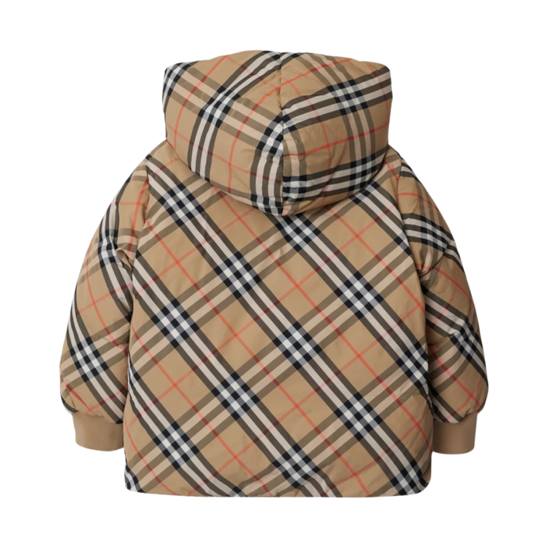 (Kids) Burberry Reversible Check Nylon Puffer Jacket Sand