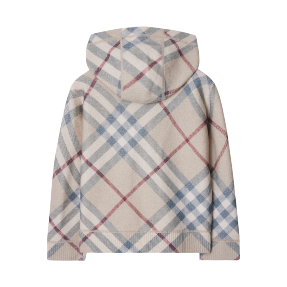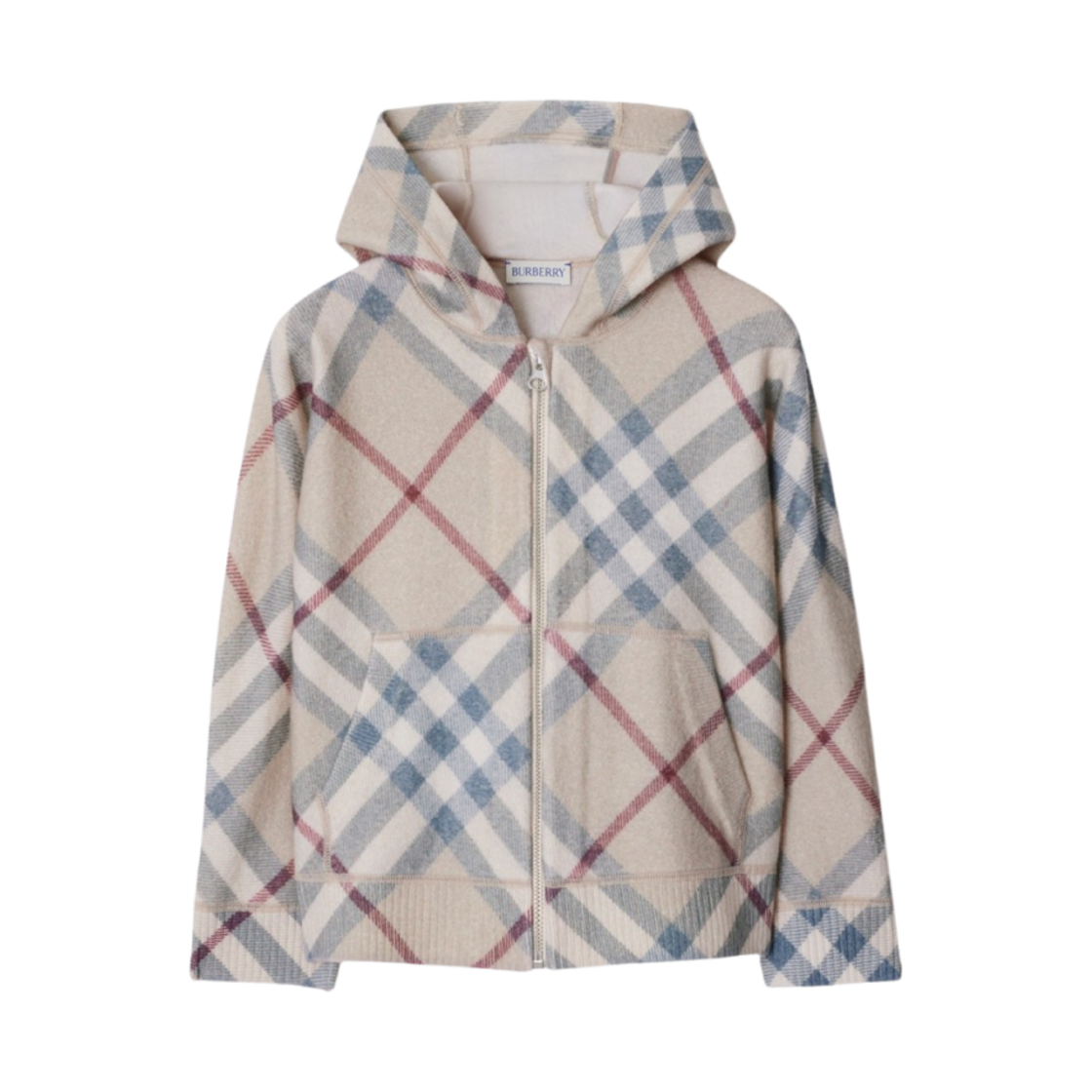 (Kids) Burberry Check Wool Zip Hoodie Pale Stone