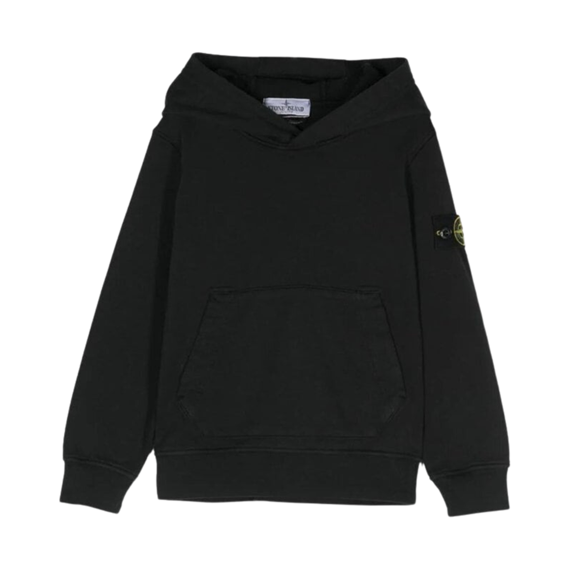 (Kids) Stone Island 61640 Cotton Hooded Sweatshirt Black - 24SS