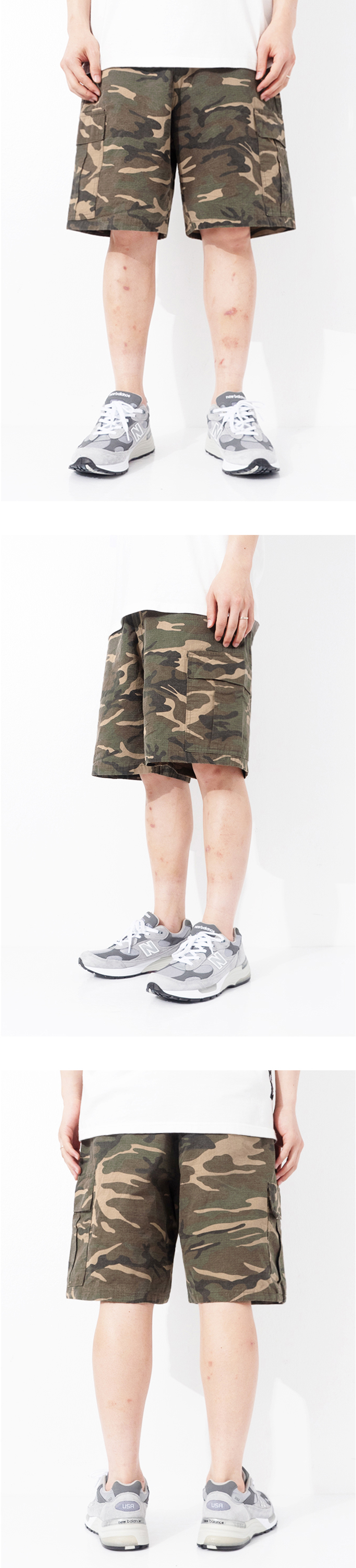 큐티에잇 가먼츠 카모 립스탑 카고 쇼츠 카키